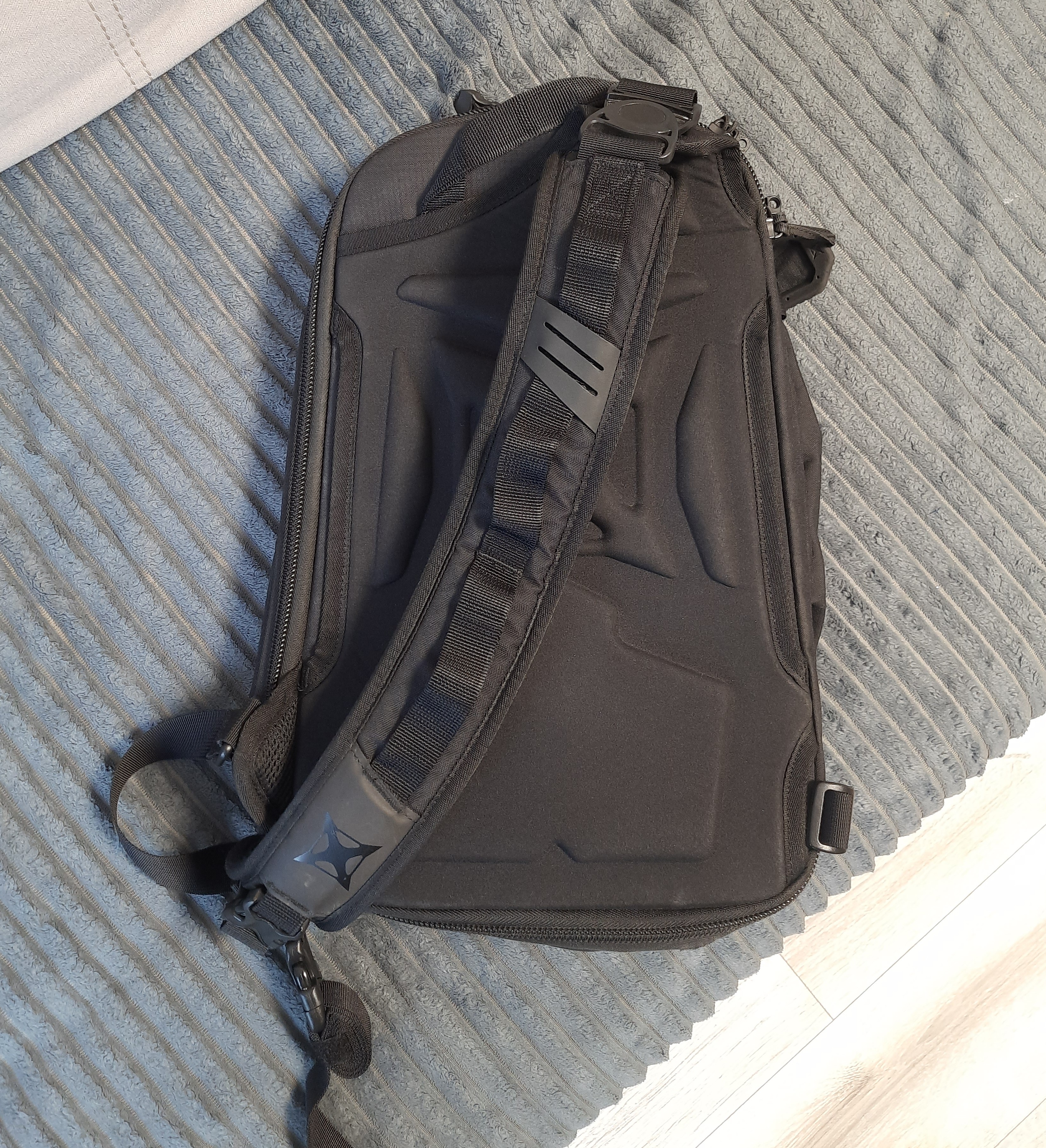 Рюкзак для прихованого носіння зброї Vertx Transit Sling 2.0 Характеристики: Розмір: 43.2×28×15.24 Обсяг: 16літрів Вага сумки- 1.17кг. Блискавка YKK Матеріал: Cordura / Nylon Фастекси: D-Flex Ціна: 5000грн. Рюкзак в гарному стані! Мною було пришито латку, на фото видно. В тому місці трохи протерло кордуру із за носіння зброї, (в те місце впирався ствол) протерло, але не сильно. Латка нашита знизу рюкзака в внутрішній частині, з зовні видно тільки строчку нитки в очі воно не кидається і на функцію роботи самого рюкзака не впливає. Нашивав сам власноруч, кому не подобається може перешити. Більш детальна інформація за посиланням https://abrams.com.ua/ua/7174-sumka-vertx-transit-sling-20-black-/