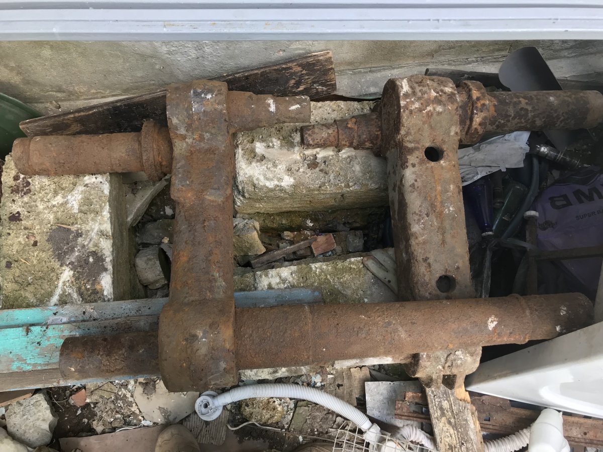 Сегодня целый день провёл пытаясь соединить две пары траков в одну линию ) Ну это просто адский процесс ) Уже вроде очищенные траки никак не поддаются пруту 20 мм !!! Каждый дефект и подгиб трака выливался в час роботы по его чистке так что под вечер я махнул на это дело рукой и продолжил работу по каркасу туловища ) Пока мало что понятно но скажу что это плечи с ув