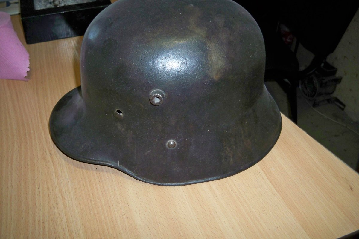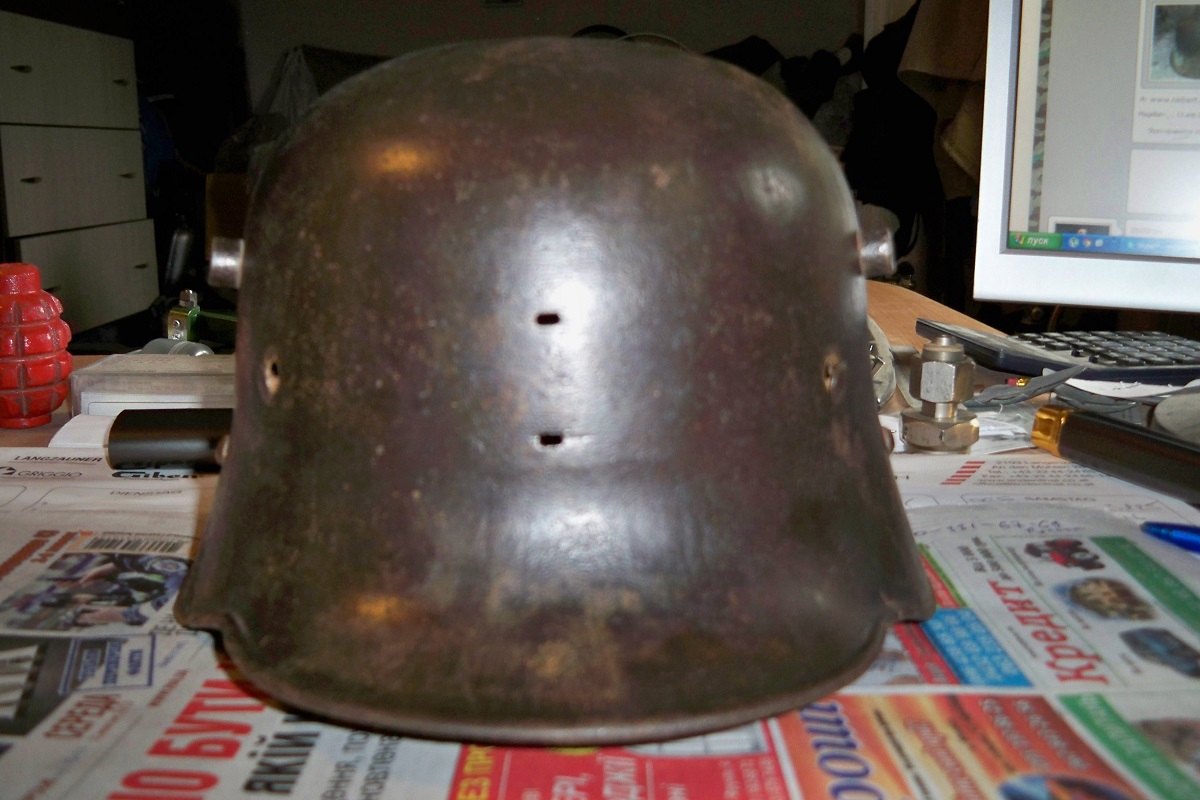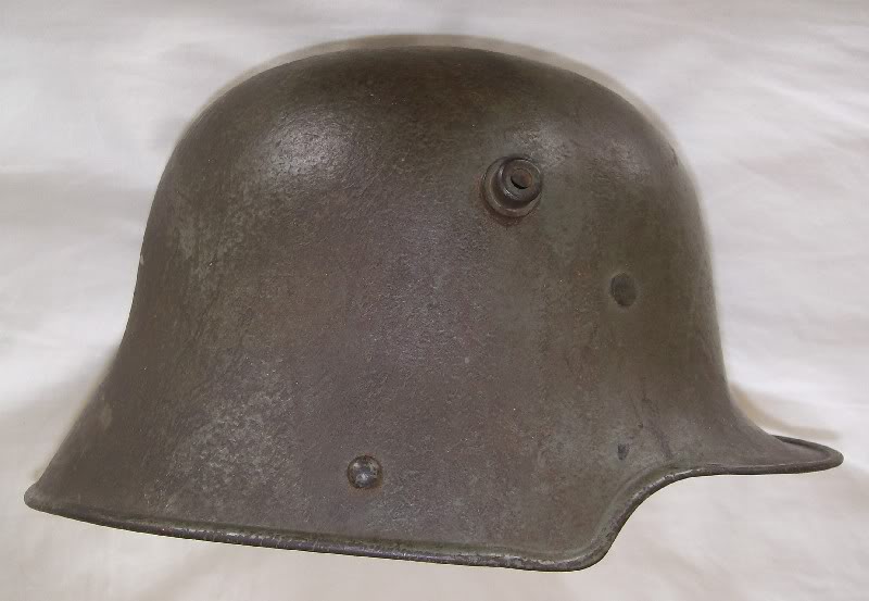 В обоих ваших случаях это австро-венгерские шлемы. У немецкого М18 как сама серьга была ближе к квадрату (а не узкая и вытянутая как у австрийцев), так и метод крепления был другой. У шлемов М18 серьги крепились не к куполу шлема, а к обручу подшлема.