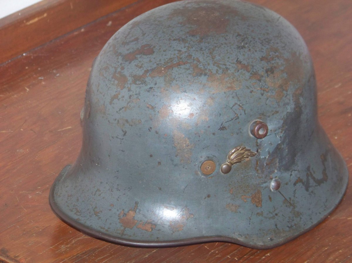 Приветствую! Этот рогач служил в австрийской жандармерии в межвоенный период. Дырочки от эмблемы"пылающая граната)". Аббревиатура LGK-LandesGendarmerieKomando . После аббревиатуры - буква обозначающая район(земля) приписки. Вверху номер подразделения? ХЗ.особых тонкостей не знаю.