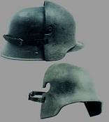 В 1915 году в немецком военном соединении Гаеде, которое воевало в Вогезах, использовалась временная защитная каска из мощного кожаного чехла со стальными накладками, прикрывающими нос и лоб.
