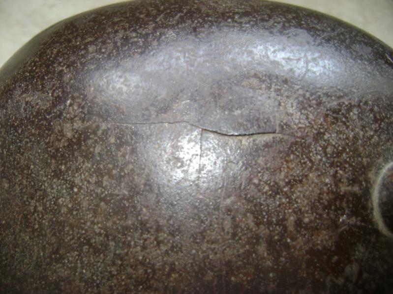 Мой рогалик, давно стоит у меня на полке, интересна цена на сегодняшний день, остатки краски хоть и потускнела, только на макушке слезла, клеймо производителя, есть маленькая трещинка, не сквозная, боевая, интересует цена:)