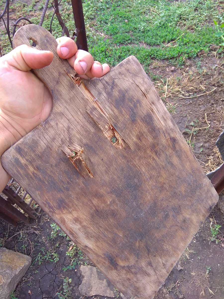Что бы понимать на что способна самодельная рогатка, картечина 8.2 мм и старая фанерная досточка толщиной 10 мм, обратите внимание на деформацию картечины