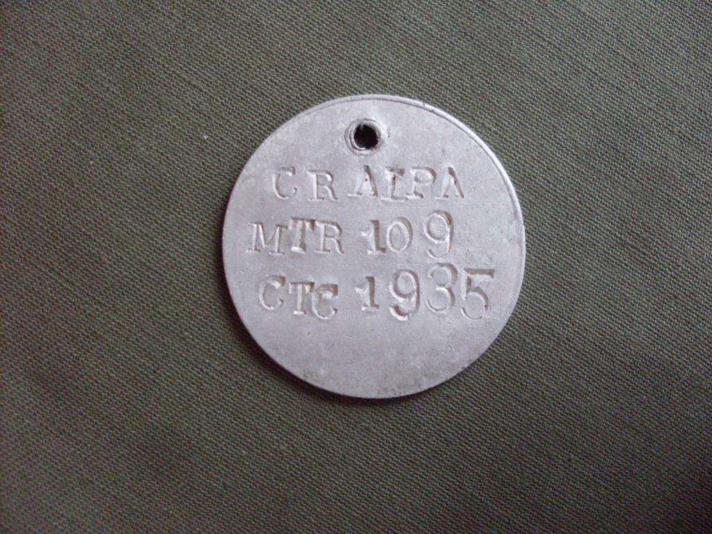 Да уж, в разнообразии и бестолковости заполнения жетонов, Румыны всех переплюнули. МАТR-личный номер-109 ,CTG- год призыва-1935 , сверху вероятно его фамилия Craipa. ROMANIA- принадлежность жетона к ВС Румынии. R.6.P.-предпологаю что 6 полк,а вот что обозночает Р не скажу ?????