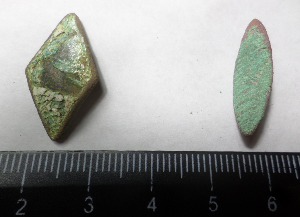 Вітаю всіх. Спочатку підозра впала на петличний ромб, але кріплення, здається, не таке. А овал взагалі не знаю від чого. Буду вдячний за мудрі підказки.