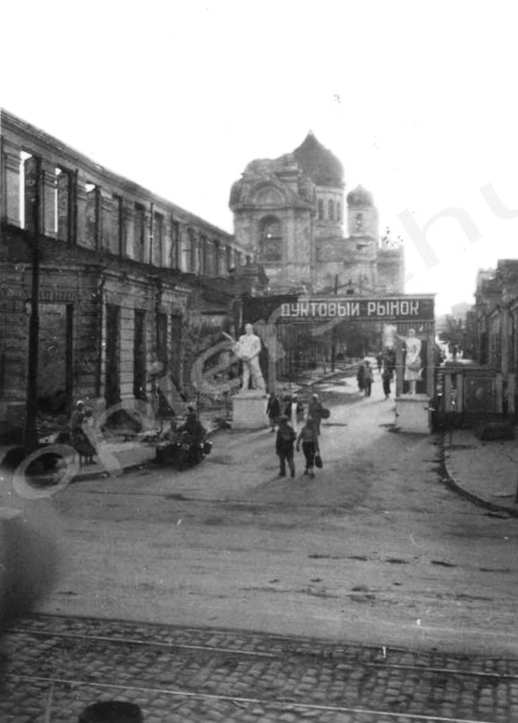 Вид северной баррикады ДОТа на переулке Почтовом ( сейчас Островского) на пересечении с ул.Большой Садовой.