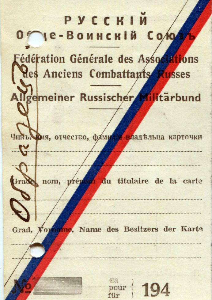 Послевоенное удостоверение РОВС подполковника Дроздовской артиллерийской бригады Данилевского С.С. Членские взносы уплачены на 1952 год.