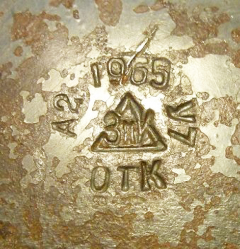ЗиК у трикутнику, або як кажуть клеймо хатинкою (клеймо домиком). З 1939 або 1938 (ну так сперечаються у мережі) і до 60-х років. Більш інформативне воно на сокирах, бо там били й рік виготовлення. Навіть є 1965. На фото - клеймо на сокирі.