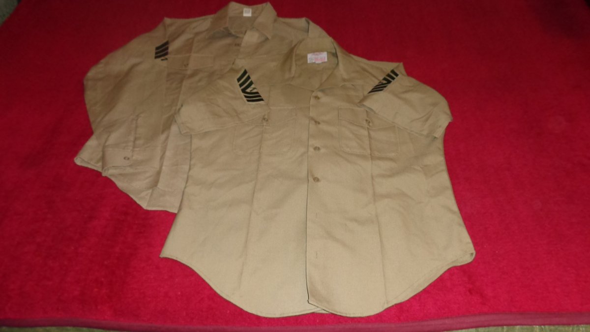 Состояние новые с бумажными бирками.На рубашке с коротким рукавом над карманом проколы от метал.знака отличия(см.фото)