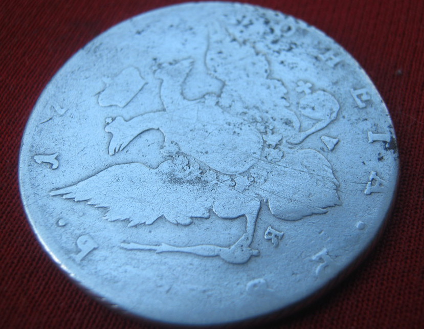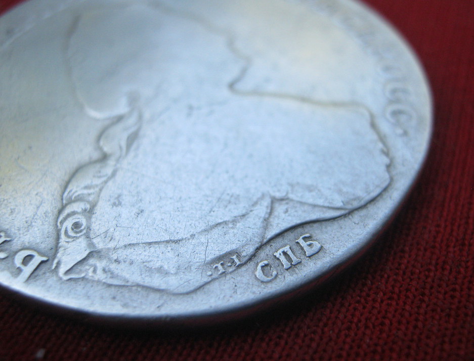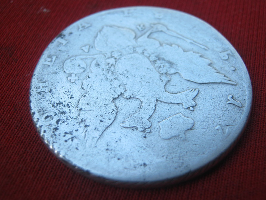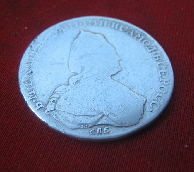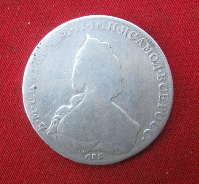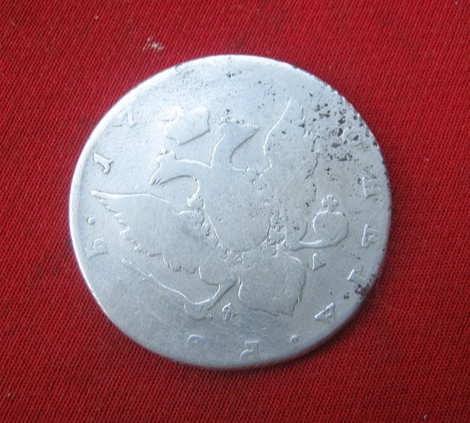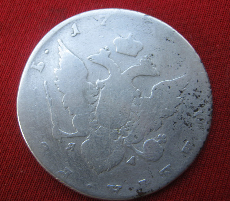Такой рубль чеканился с 1785 по 1793 гг. По разновидности простой. Полностью идентифицировать не представляется возможным в виду его состояния. Черные точки - это оксид серебра. Можно убрать нашатырем. Цена думаю чисто символическая. ИМХО