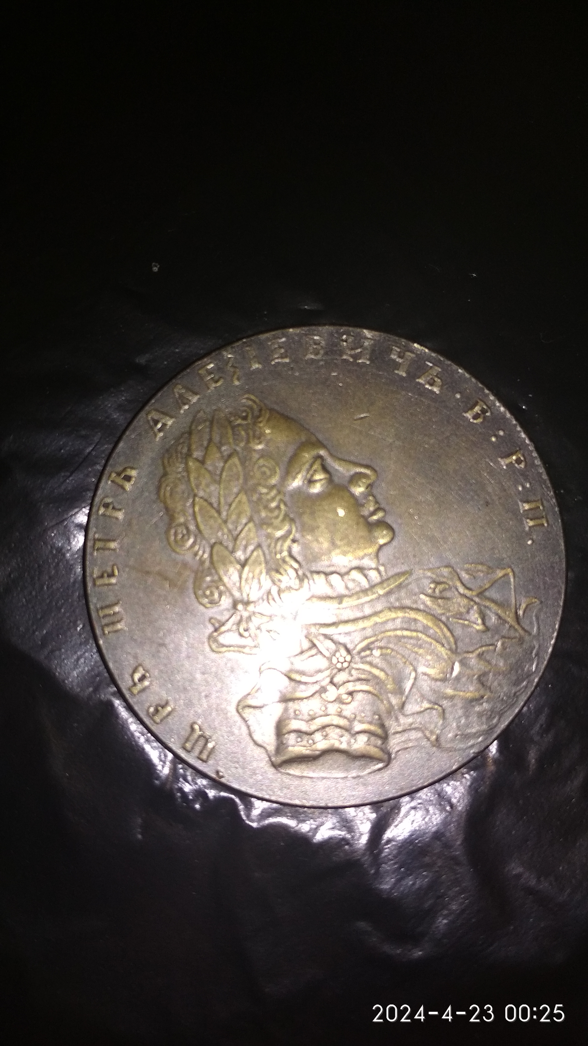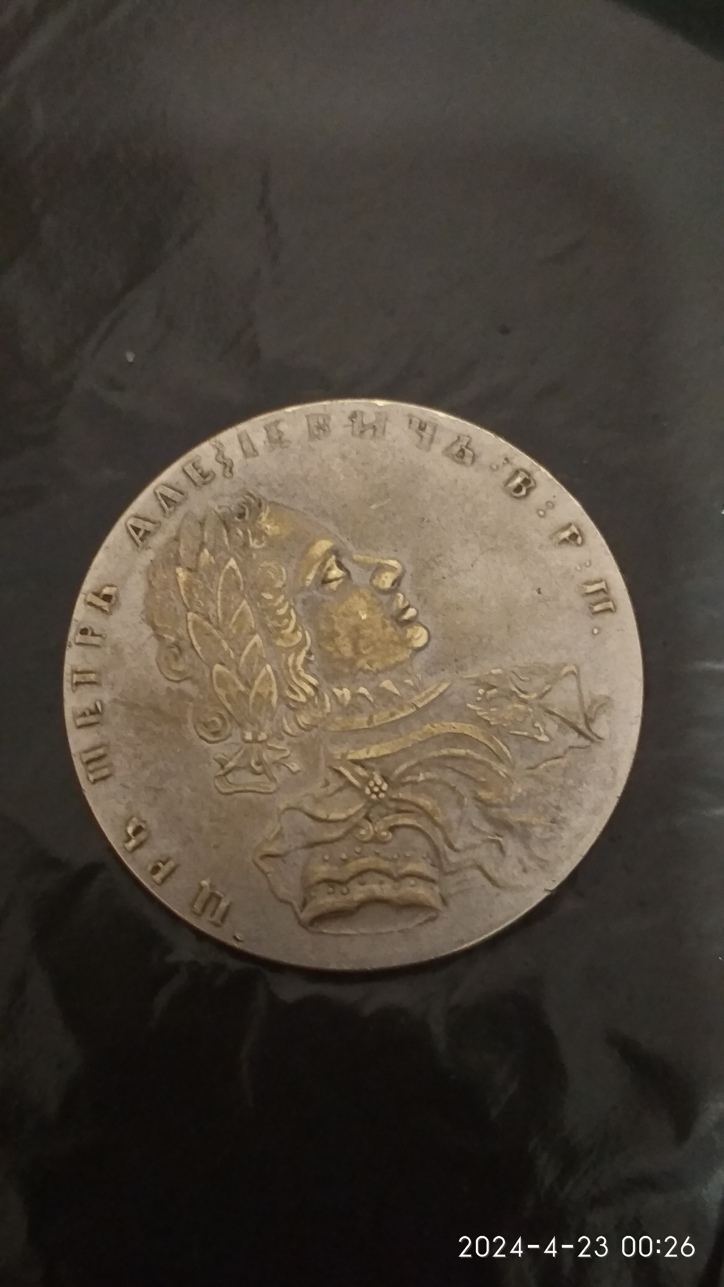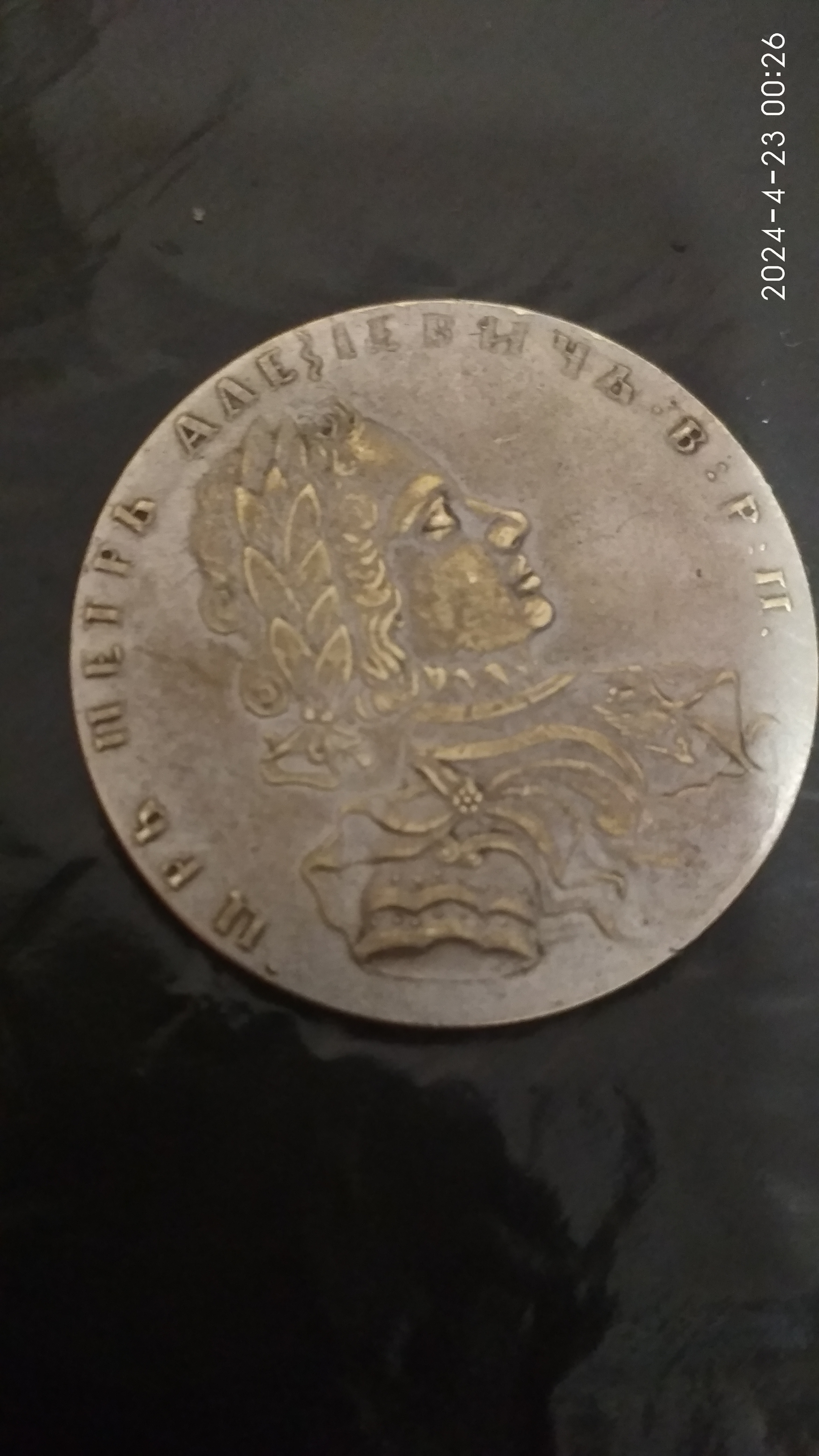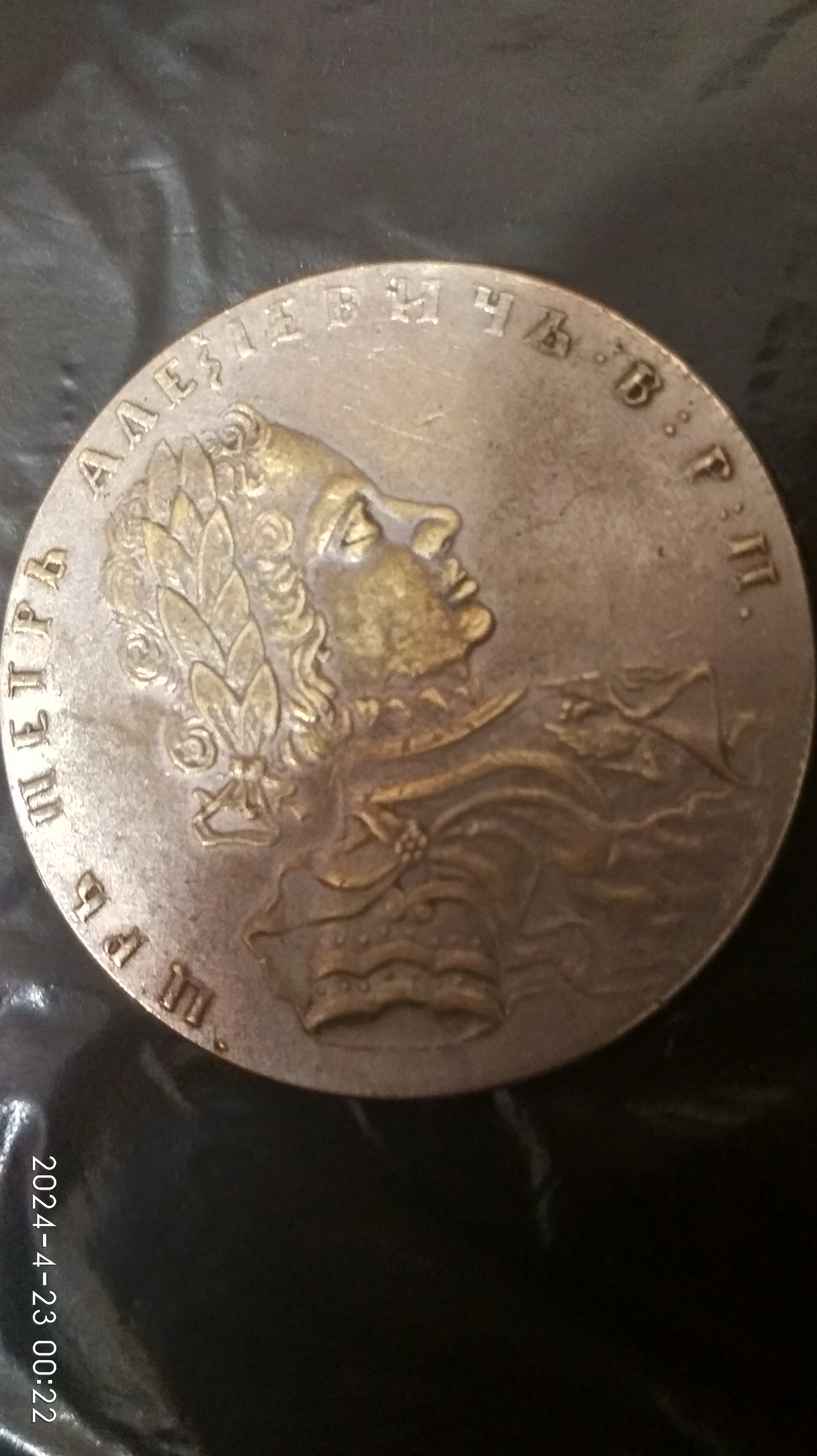 ну в первую очередь гурт, он вдавлен, образца 1860 годов. при петре буквы были выпуклые , во вторых металл видно что желтый покрыт напылением, литье в третих, ну и за такое фото при петре художника бы подвесили за бубенчики, или на кол посадили )