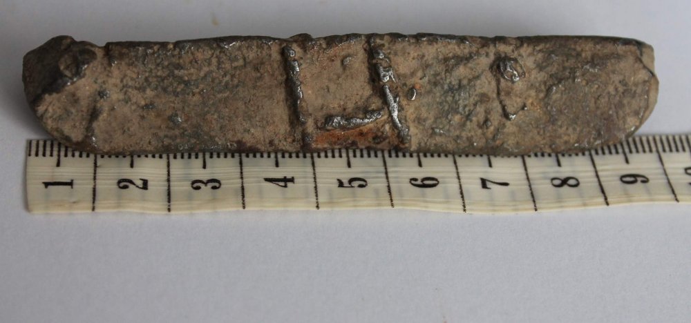 Доброго дня і слава Нації! Знайшов тригранний брусок, вже щось таке бачив в інтернеті. З одного боку чітко видно літеру Н з крапкою, вагу нема де виміряти, на око десь 200 грамів. Тест на срібло: не магнитіться, на крейді залишає темний слід. Порадьте, це те що я думаю? І традиційно, як визначати коштовність?))
