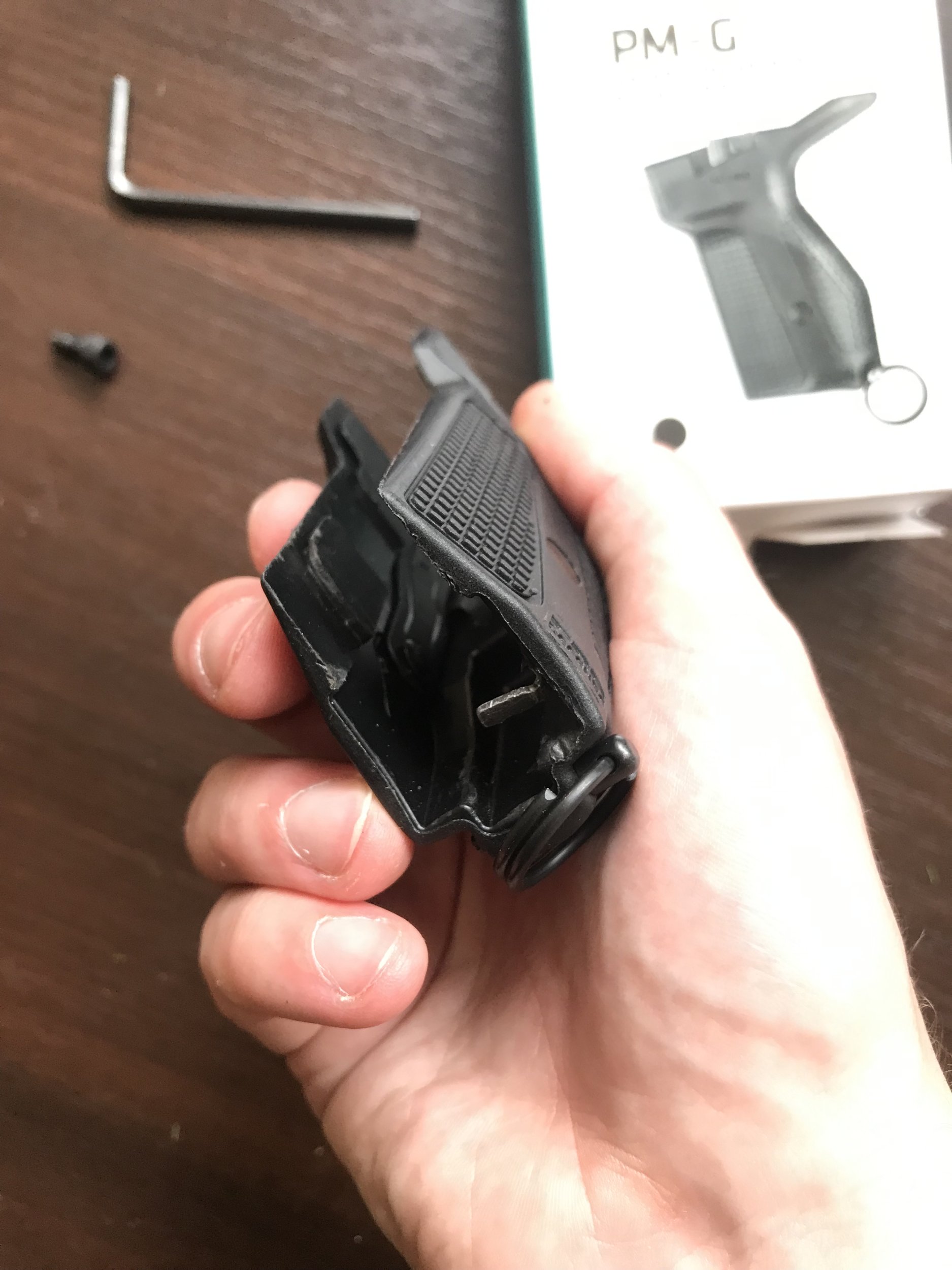 Сняли с ПМа для лучшей работы чуть подгибали скобу которая заходит в штатную клавишу сброса магазина. У нас так работало лучше