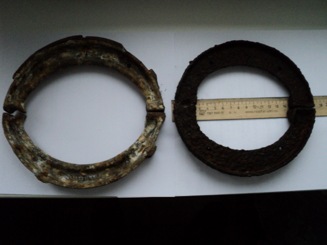 Вторые колодки DKW NZ-350. Точно такие же на Иж-350 и Иж-49. На ДКВ клеймо 4кольца должно быть, как Ауди, но вряд ли найдется. Разная толщина это передние и задние.