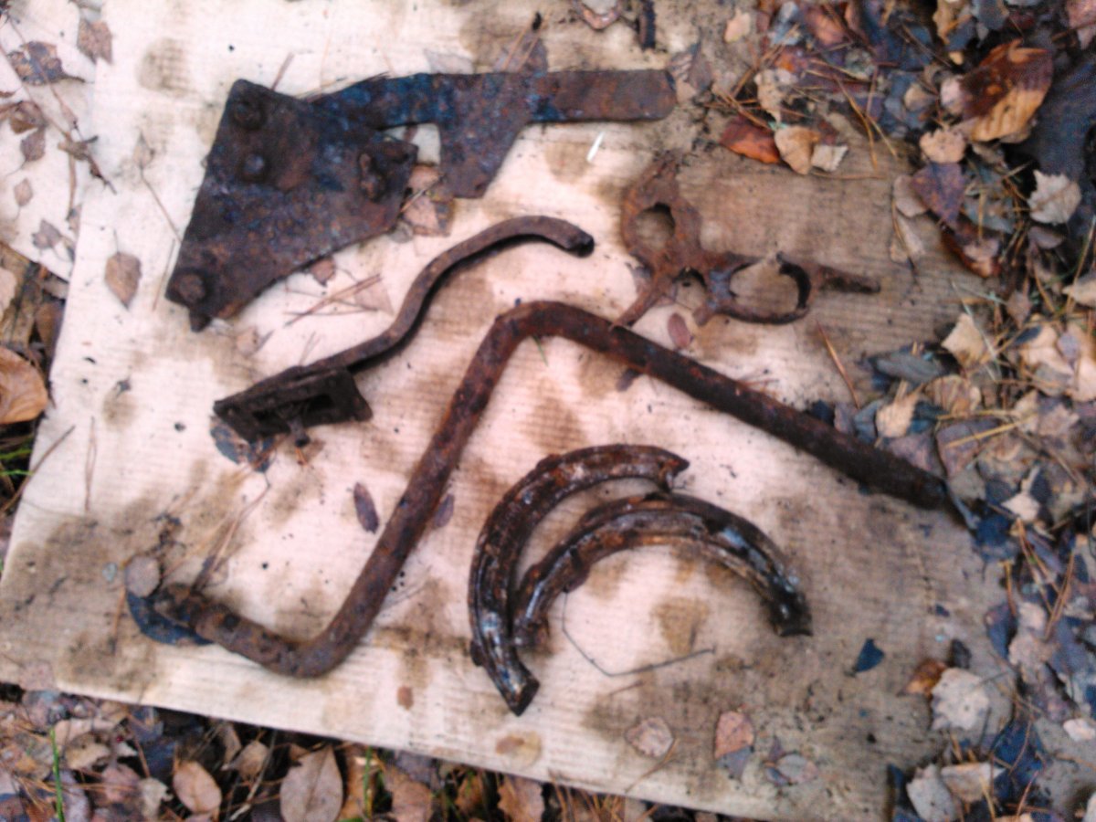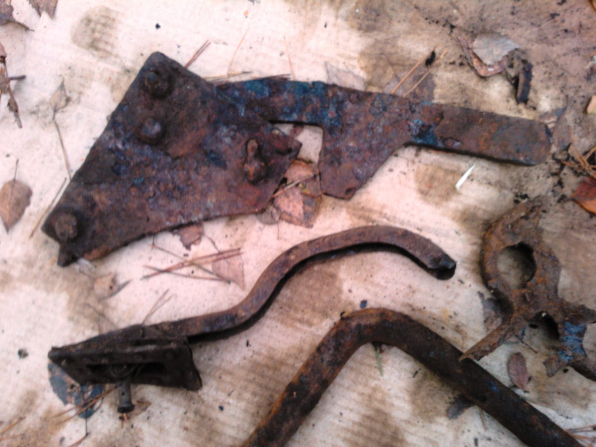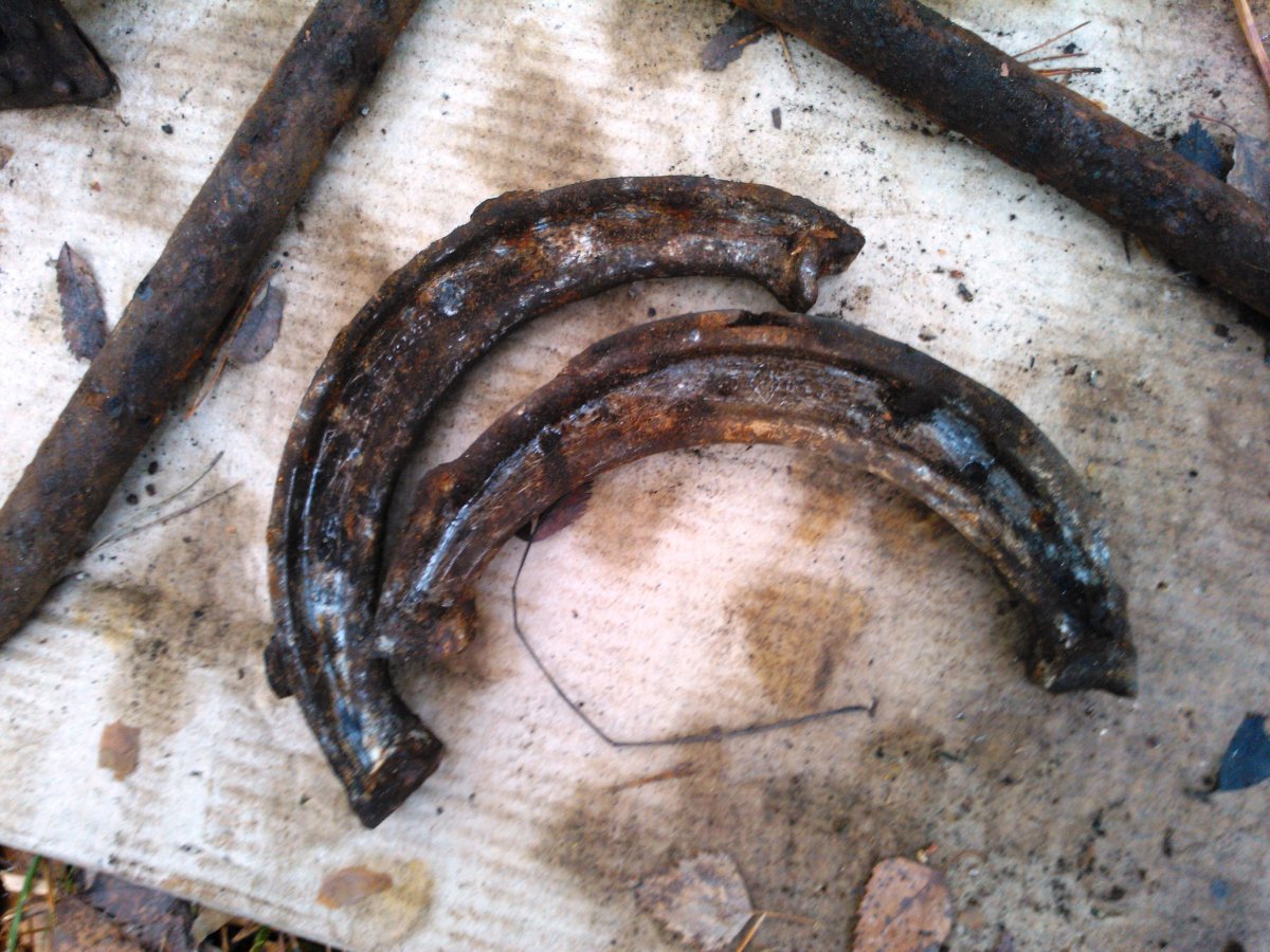 Опять вырыл тормозные колодки. На этот раз железные и меньшие по размеру. Значит тоже от мото. Странно, что одна колодка на пол сантиметра уже другой. Одна шириной 2 см, другая 2,5 см. От какого мотоцикла могут быть. Найдены недалеко от алюминиевых колодок.
