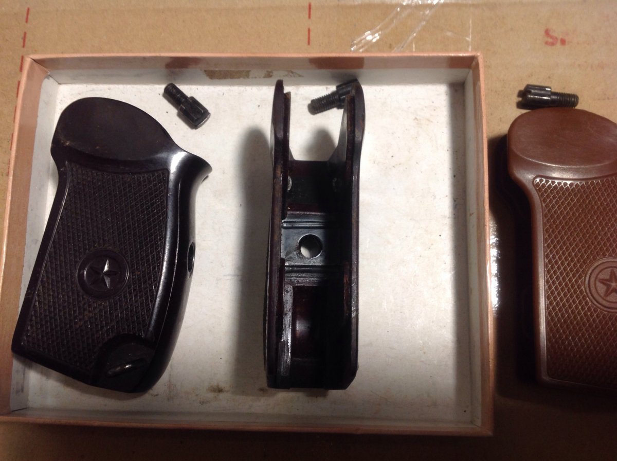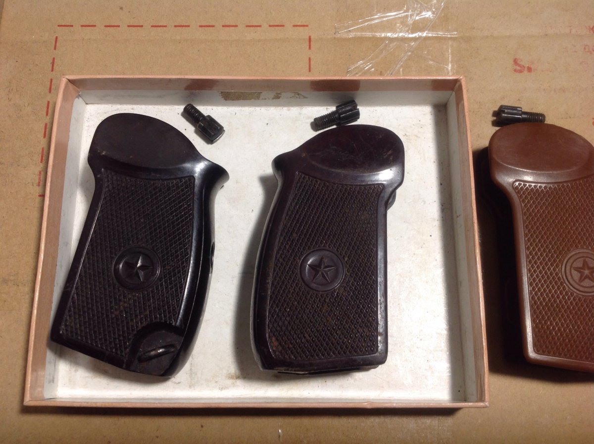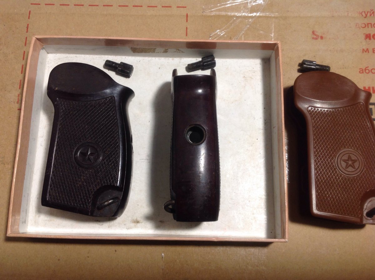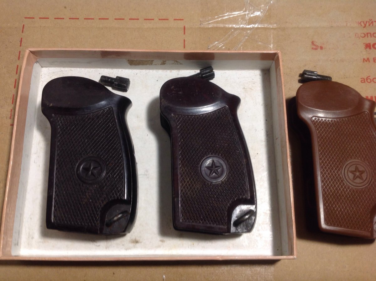 Продам рукоятки ПМ: 1) темный бакелит + винт 150 грн.( б/у состояние). 2)Пластиковая рукоятка ПМ + винт,стояла на травмате,состояние новой 120 грн.Пересыл на покупателе или самовывоз.