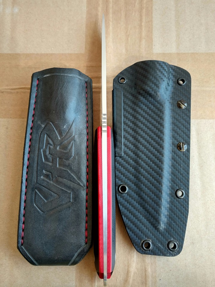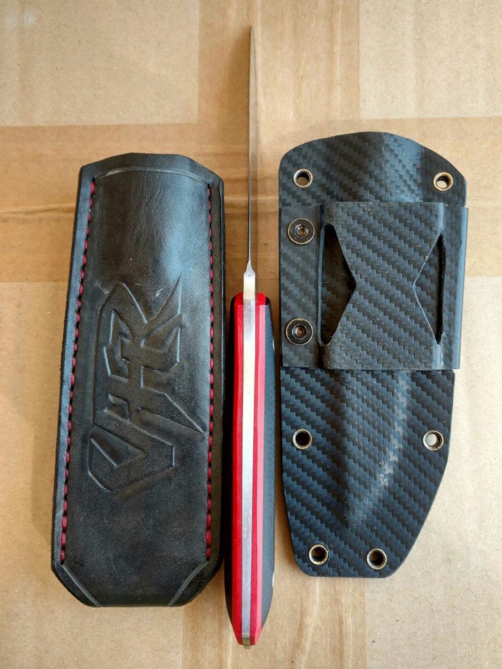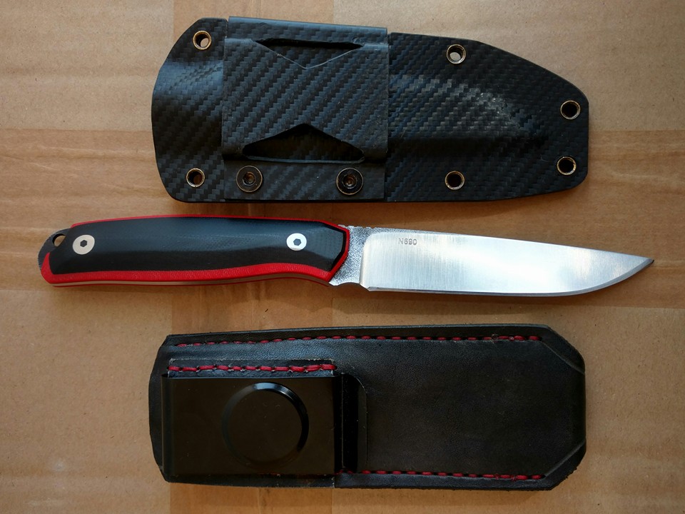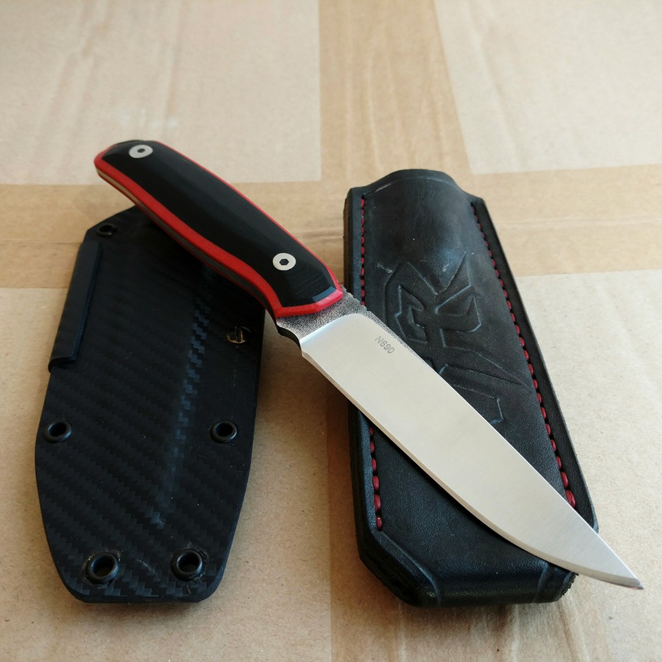 Нож работы Игоря Подбуцкого (г. Харьков). Сталь N690, 60 HRC, клинок 103х24х3,8 мм, вогнутые спуски, поперечный сатин. Рукоять 109 мм, накладки - G10. Две пары ножен - кайдекс и кожа. Использовался редко, переточен под 18-20 градусов, но для моих задач оказался слегка толстоват. Цена - 2500 грн. Продажа при личной встрече в Киеве - для других городов оплата на карту ПриватБанка, доставка Новой почтой. Все вопросы в личку.