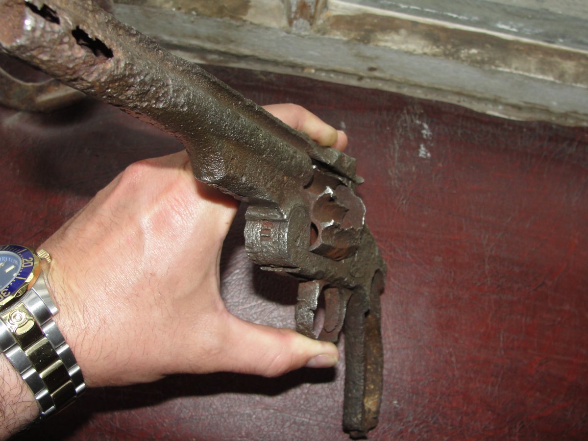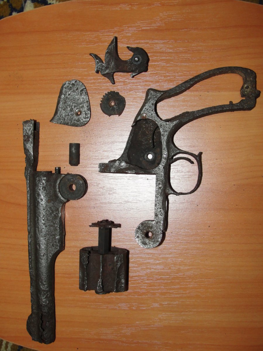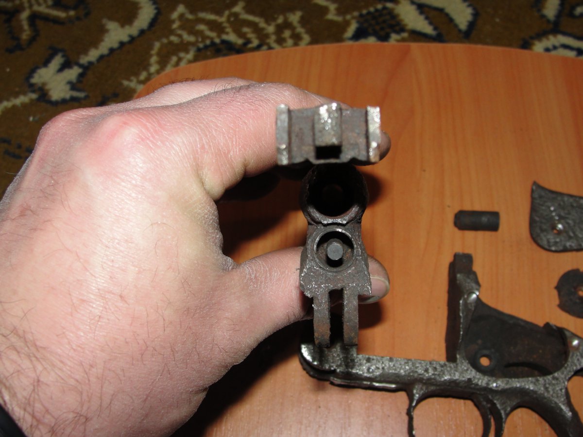 Оцените револьвер в таком состоянии. Барабан то,что от него осталось, вращается ,боек двигается.