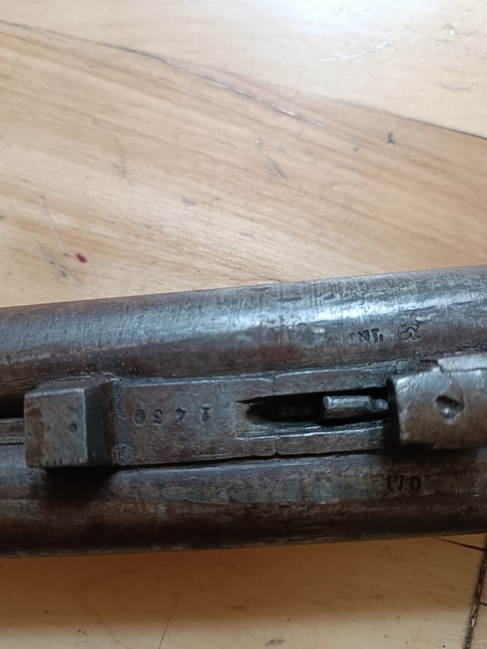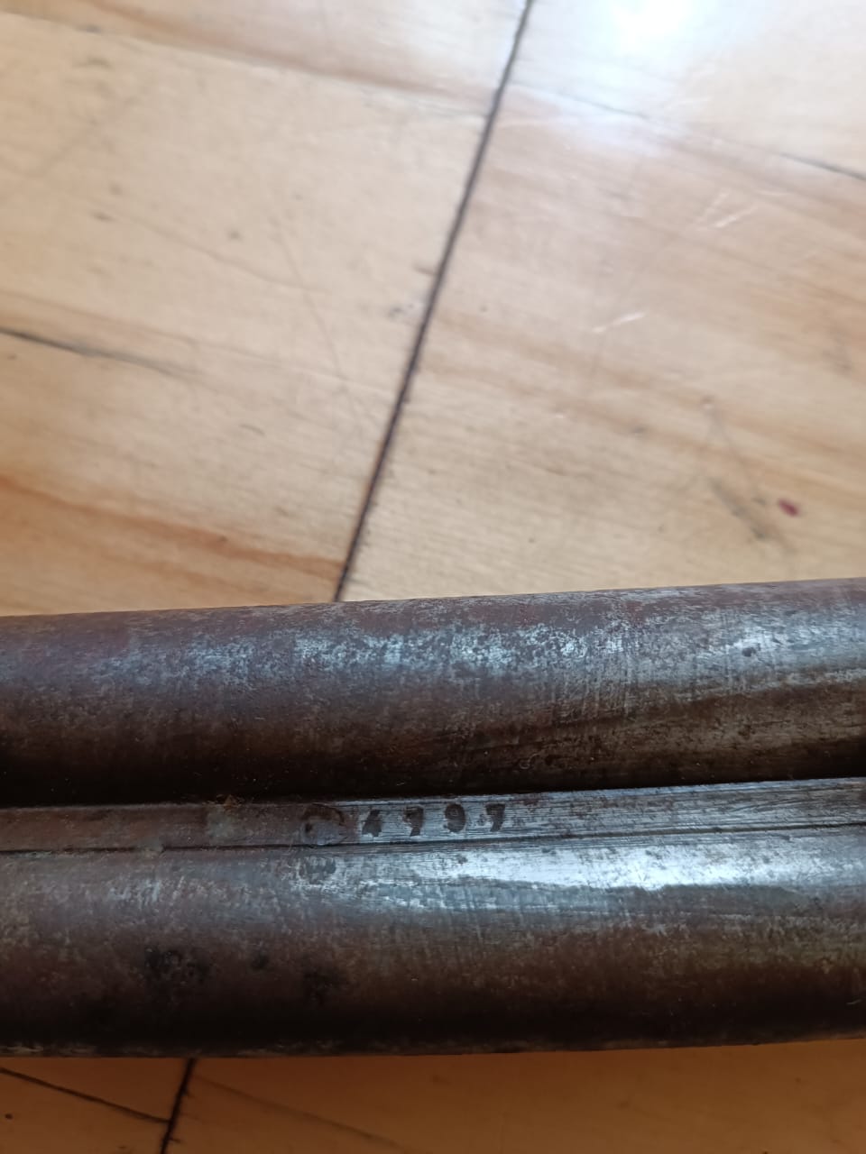 Предмет називається - ружо. Для грамотних - рушниця мисливська, двуствольна, куркова, лефоше ... колись було. Точно визначати виробника сенсу немає, на ціну це не вплине. Висловлюючись на мові лікарів, пацієнт більше мертвий ніж живий. Як рушниця, воно вже своє віджило. Нема сенсу з"ясовувати стан в середині, працездатність курків і т.д.. По ціні - 100 дол.
