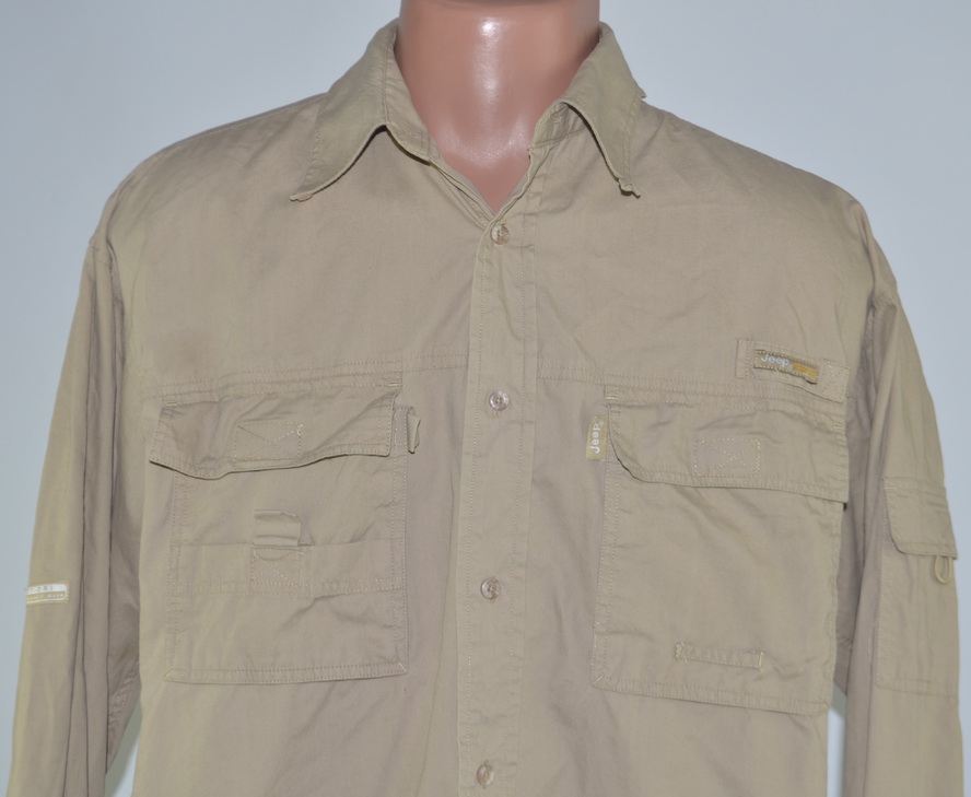 Рыбацкая (туристическая) рубашка Jeep (M) - быстросохннущая, натуральная ткань - много удобных кармано, в том числе и на рукаве. - вентиляция в районе спины - птоотводящая подкладка в районе шеи. - воротник можно поднять в 2 положения и защитить шею от солнца. Состояние - б\у, бледное пятнышко над карманом и небольшой прокол на ткани под карманом (см. фото) Замеры по изделию: Плечи - 55см. Подмышками - 60см. (в полуобхвате) Длина по спине - 81см. Длина рукава - 61см.\56см. Цена - 100гр. Пересыл Новой Почтой и Укрпочтой за счёт покупателя при получении.