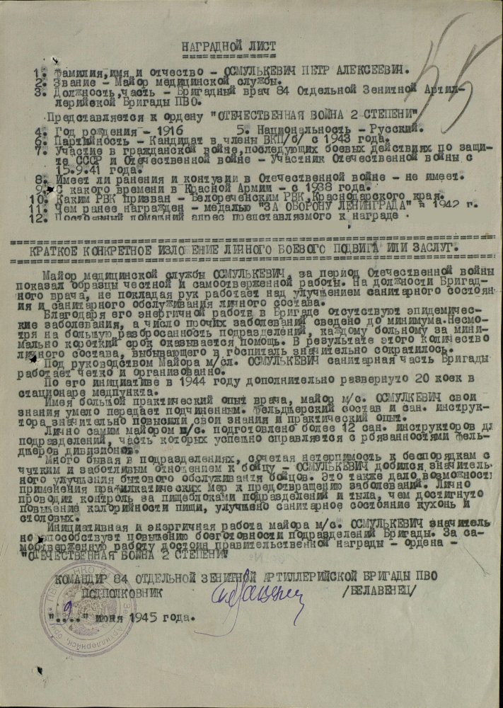 Для общего развития - 9 мая праздновали Победу, 9 июня составлен наградной лист. Обычно как-то намного быстрее делалось...