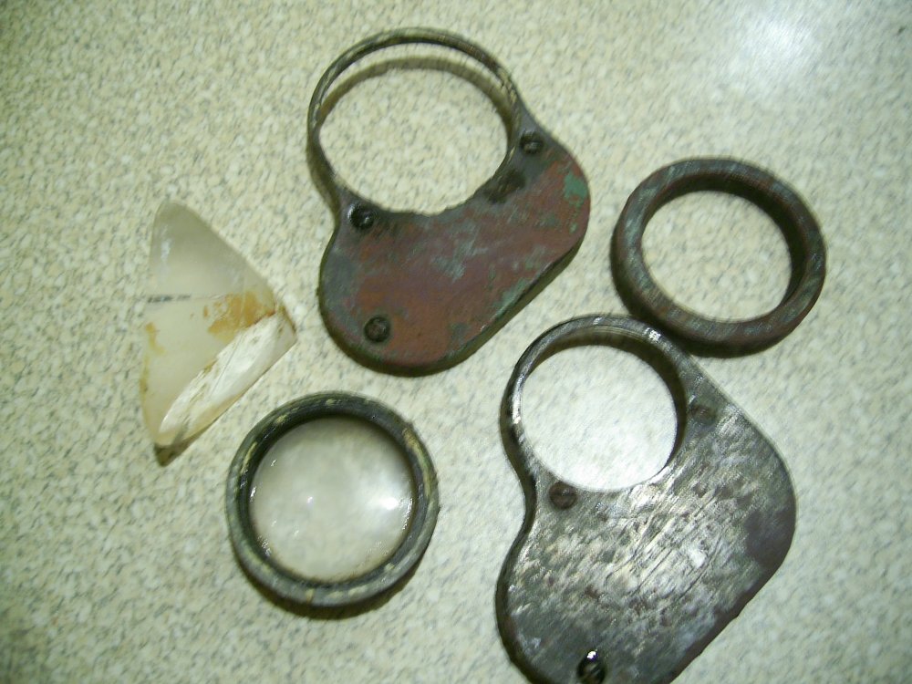 Подскажите что это может быть ,найдено все в одной ямке на позициях РИА. стекло увеличительное,а треугольник сделан по принципу перископ,есть клеймо-Д 6х 266292