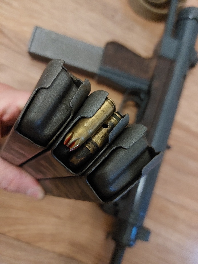 Доброго вечора. Збирав потрохи СХП варіант СА-26, але прийшов час продати(. Прошу оцінити ММГ (майже СХП) комплект. До комплекту входить: 1) ММГ з відновленим затвором та магазином. 2) 3 складські магазини. 3) ПБС з різьбою 14х1 ліва (варіант з діаметром під "девятку"). Не розбірний, багатокамерний. Залишилось заварити пропил на рідній трубці і нарізати різьбу під ПБС ( штифт мав би бути обов'язково!!!). Гільзу викидує. На фото накол капсуля СХП набою. Як буде працювати автоматика не знаю, не встиг довести до такого стану та спробувати. НІЧИМ НЕ СИРІЛЯЄ!!!!