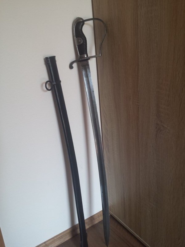 Да, это ее вариант после 1897, клинок и ножны были укорочены на 12 см и тиснули на обухе вверху значек. Найти не укороченную почти не реально. На более поздних этого знака нет.