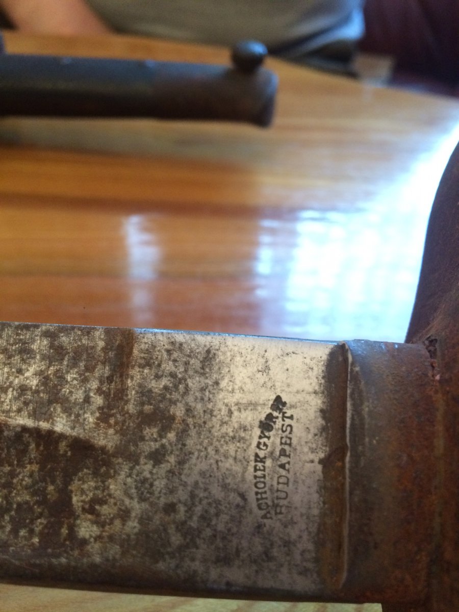 Хто може з орентувати по-ціні такої знахідки.Сабля кавалерійська офіцерська Австро-Венгерська .На клинкові надпис ACHOLEK.CYORSY BUDAPEST, а на ножнах цифра 35.Метал на 5-треба чуть почистити войлочним кругом.І на рукояті поміняти щкіру(миші поїли).