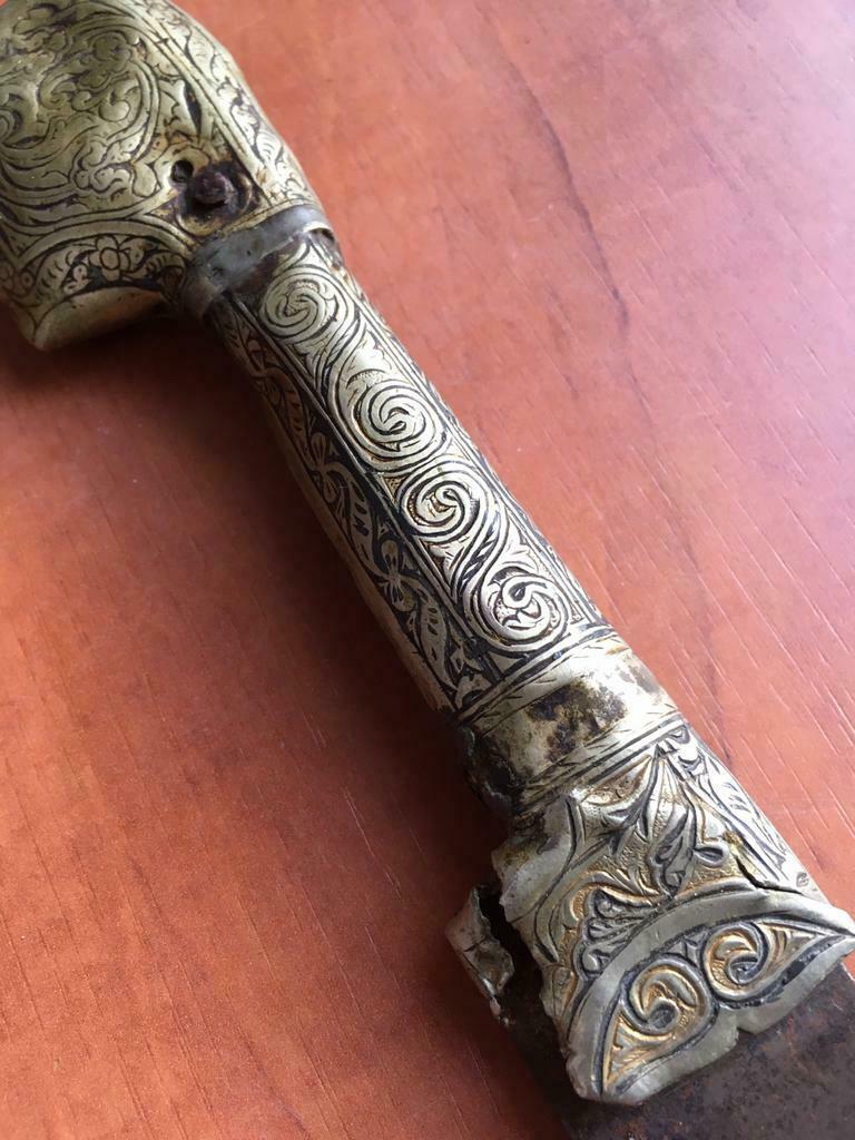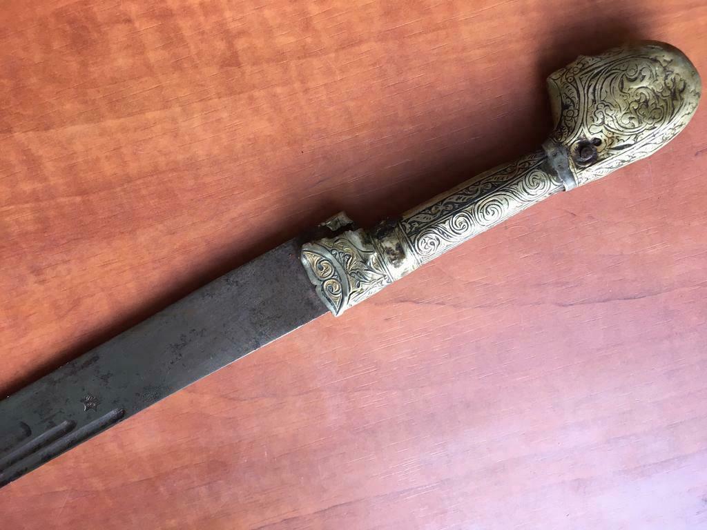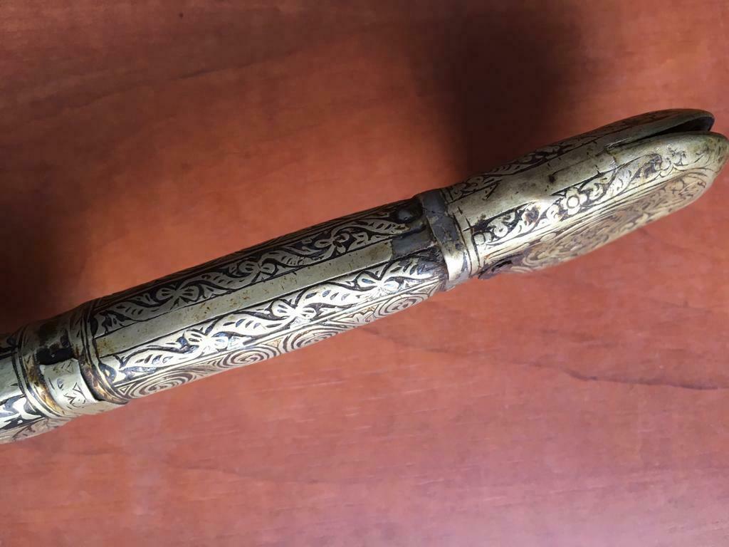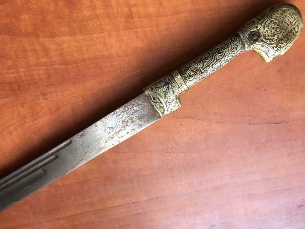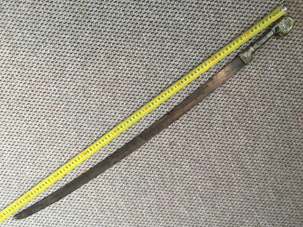 Шашка(не сабля) Кавказ(а возможно и ср.Азия)начала 20 века,ножны не от нее.Родные ножны, были погружного типа и в окладе,в стиле таком как рукоять(скорее всего серебро).