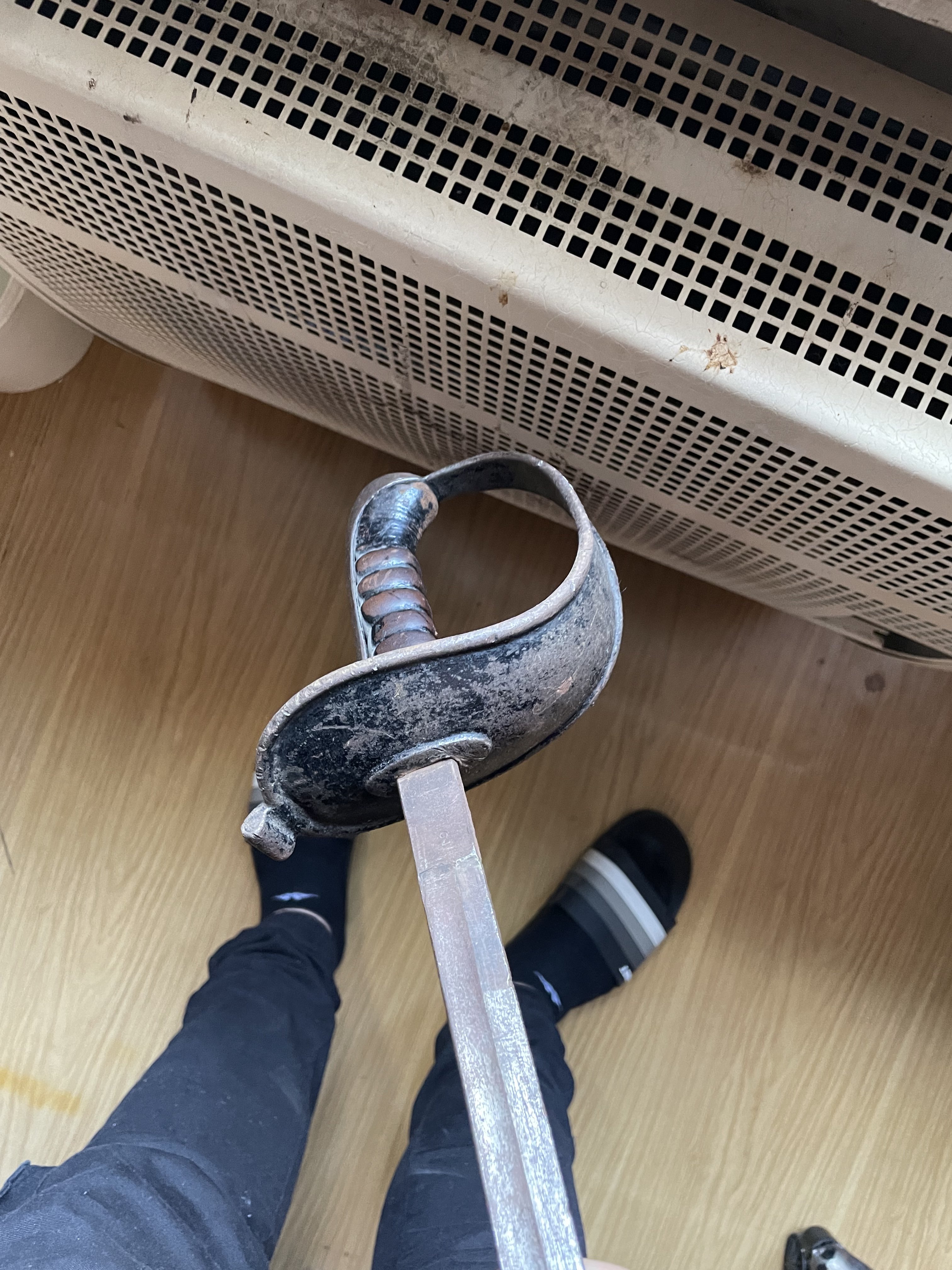 По производителю было понятно, но могла быть изготовлена для другого государства..Чашка мощная, но без отверстий и прорезей, даже для темляка..Рукоять тоже не усилена "ушами". Клин тоже не мощный и даже офицерский пошире был.