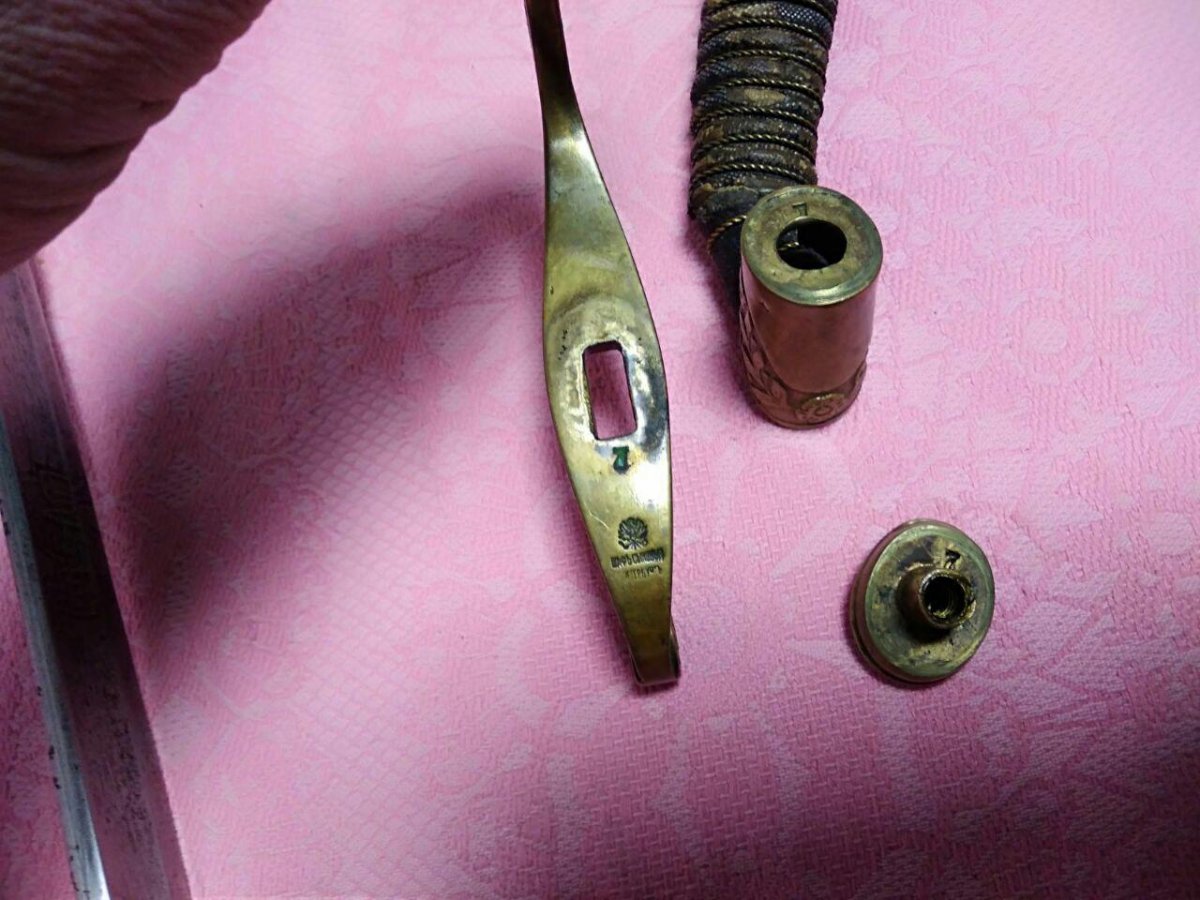 мне видится "зелень" в пазах, что навевает на мысль о полировке пастой Гойя(( при которой стирается все что осталось от позолоты Спасибо за Ваш комментарий! Не подскажете ссылку на подобные сабли которые не вызывают сомнений для детального ознакомления?