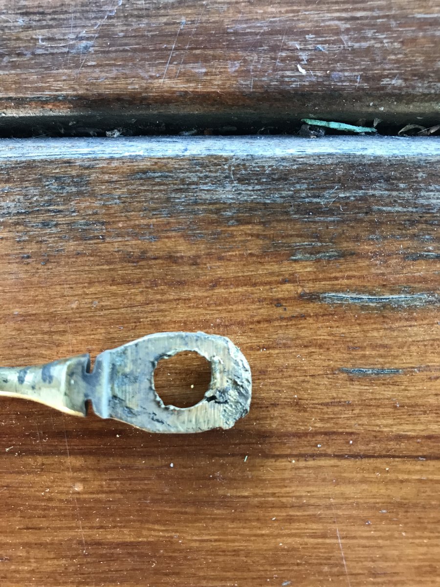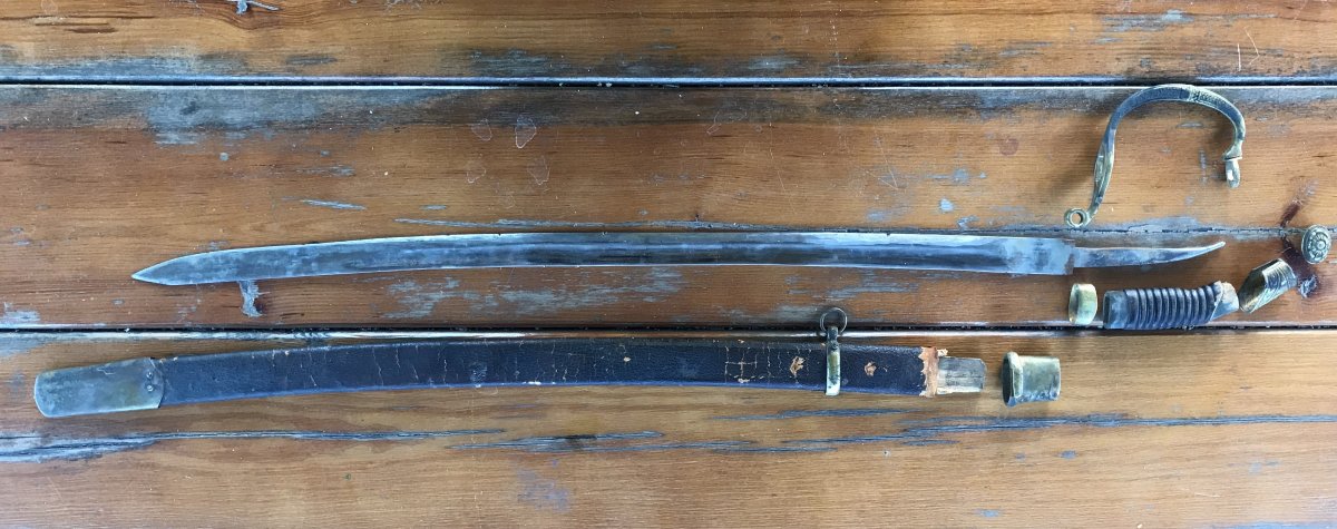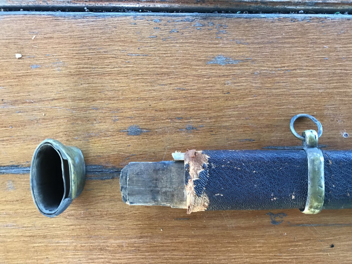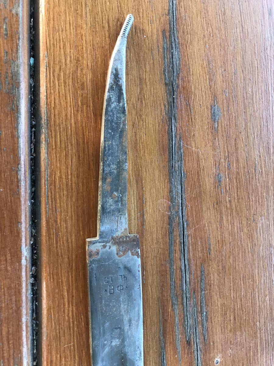 Не знаю как давно.Найден при капитальном ремонте крыши , чердачный сохран так сказать .Да, кончик мне тоже показался необычным исходя из фотографий аналогов может в те времена делали ? Вот такой есть)))