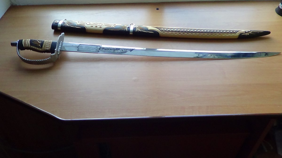 очень качественно изготовлена. такое ощущение что это заводское изготовление, по крайней мере по качеству близко к этому. общая длинна в ножнах-94см, общая длинна без ножен-89см, клинок-73см обух-5мм. заточена. 1350грн.