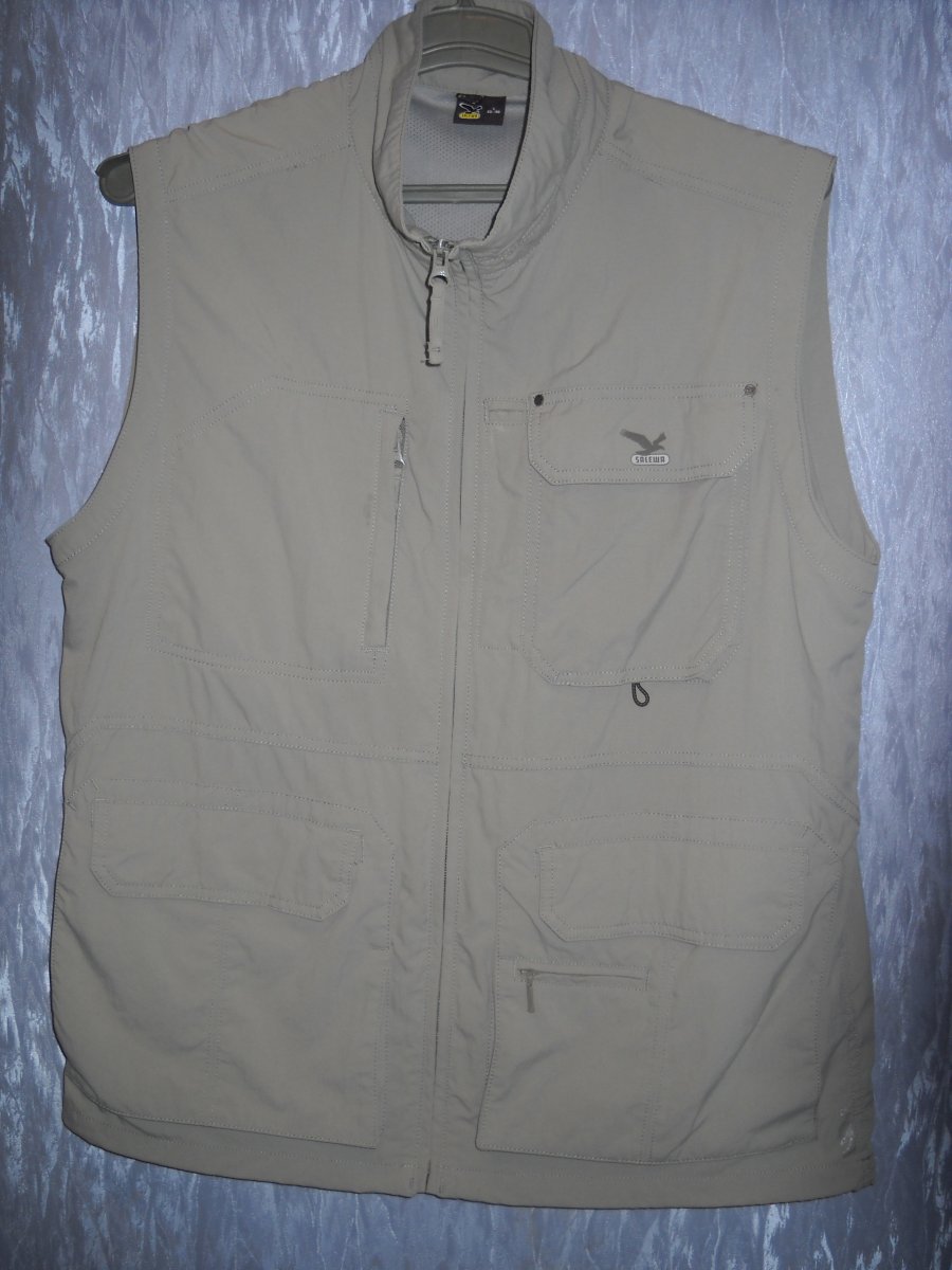 Производитель Salewa.Размер L.Фактические замеры-длина по спине 73 см,плечи 50 см,полуобхват груди 60см. Шесть карманов спереди ,плюс карманчик под ручку и небольшой на змейке.Левый нагрудный карман усилен заклёпками.Внизу сзади большой карман на змейке.По нижней кромке утяжки с фиксаторами. Состояние новой вещи.5+++ Цена 220 грн. Перевод на карту ПБ.Пересыл на НП на покупателе.