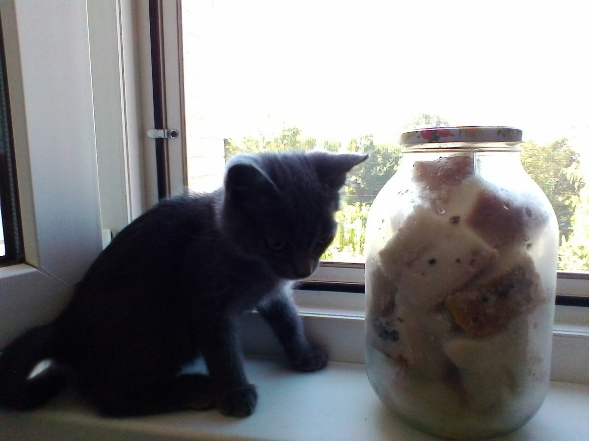 та ви ж бачете що то півлітровий слоїок тож сало там теж дрібне . а в кого дрібне сало? все вірно в котів. тож те кошеня як тілько троха підросте піде на сало.. отакоєот. а ви кажете
