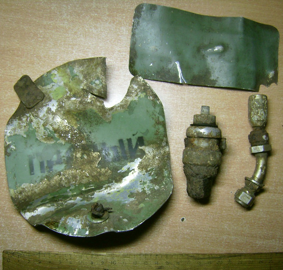 По разлету обломков и их фрагментации можете оценить силу удара? Может в месте есть срезанные под углом старые деревья? В любом случае надо искать и выбивать последовательно квадрат за квадратом, отмечая места находок особенно интересных. Вполне возможно в земле остались двигатели или их части с шильдами. А там и определить получиться.