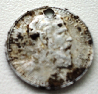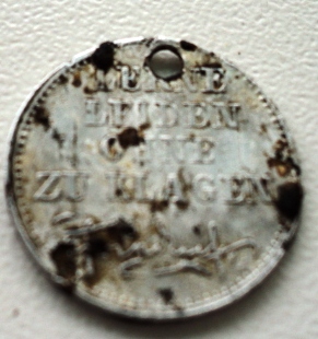 Выкопали такой алюминиевый медальончик. На одной стороне кайзер Вильгельм III, на другой его изречение, "научись страдать, не жалуясь". Из чего сделали этот медальон? Из монеты? И стоит ли он чего?