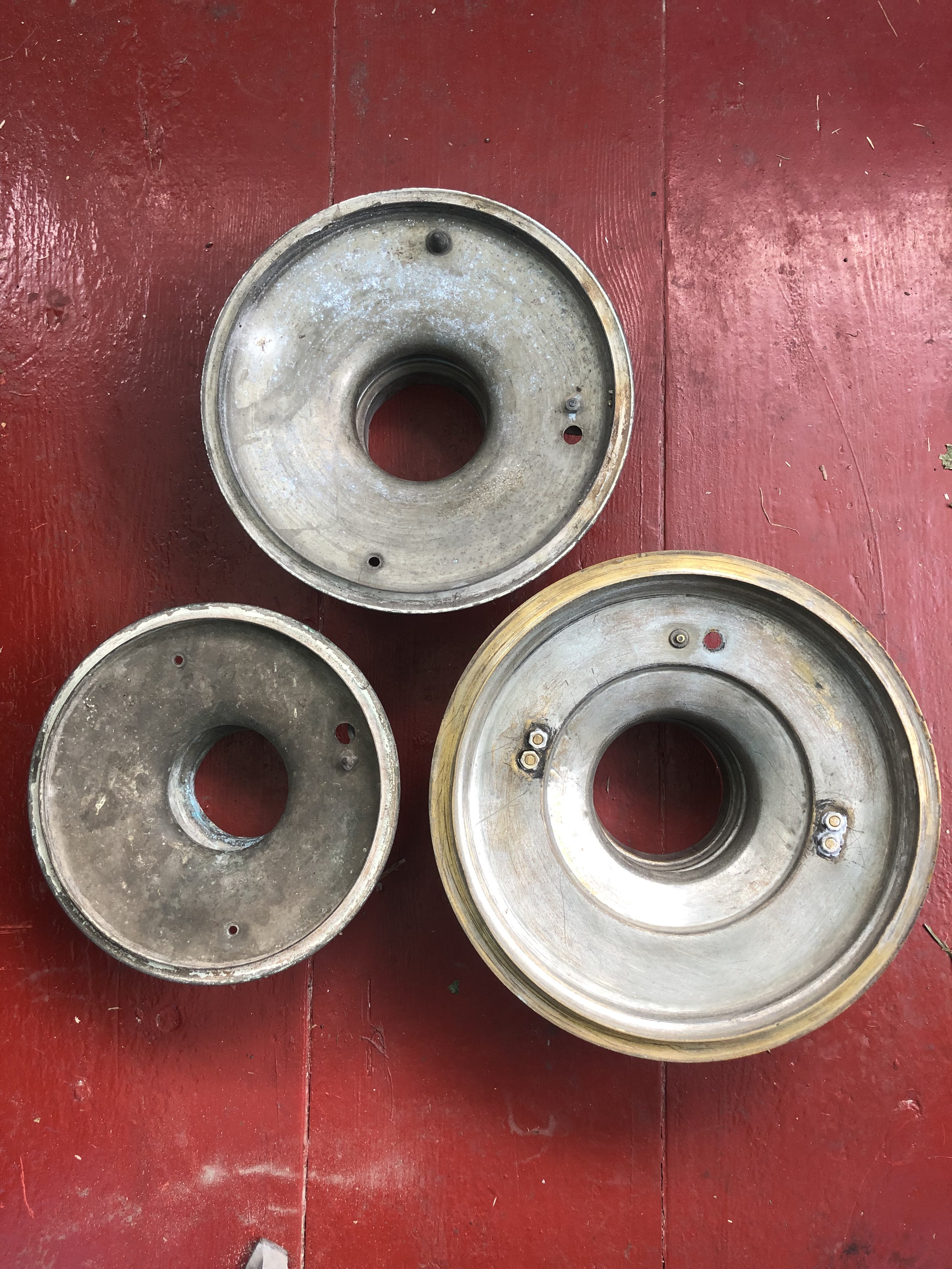 Вітаю шановно громадо! Знайшов ще один самовар заводу Баташева(меньший за попередній блискучий)і кришку від самовару ( ще меньша) Другий самовар теж з тріщиною але має працюючу заслінку внизу, блискучий самовар без заслінки розміри Великий блискучий самовар висота 62, охват бочонку 82, діаметр кришки 26,5 Діаметр внутрішньо отвору кришки 8, 5 см Меньший неблискучий самовар висота 53, охват бочонку 75, діаметр кришки 24, Діаметр внутрішньо отвору кришки 7 см Кришка від найменшого самовару - діаметр 21 см, Діаметр внутрішньо отвору кришки 7 см