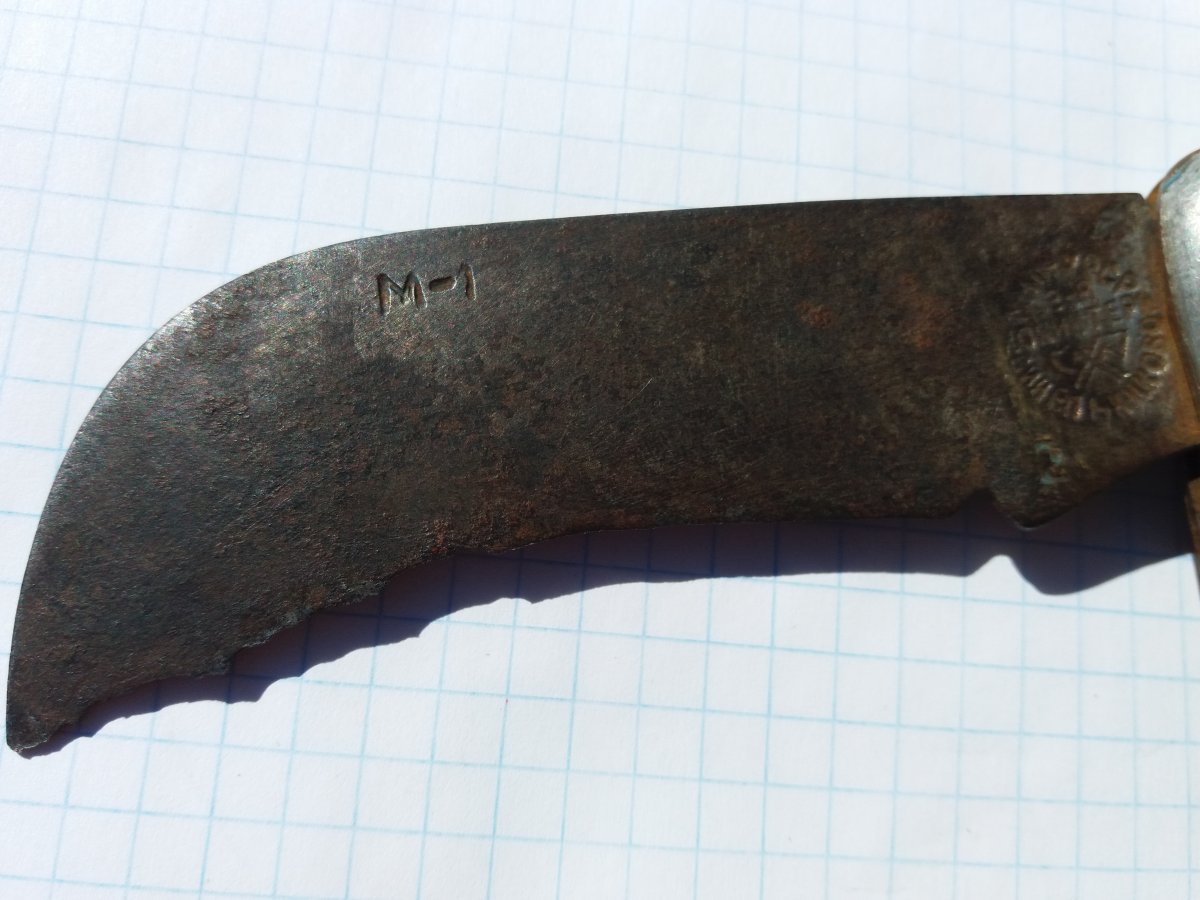 Сразу скажу что могу ошибаться, но Ваш нож послевоенный, клеймо тоже послевоенное,у довоенного деревянные накладки полностью покрывают рукоять. Как на этом