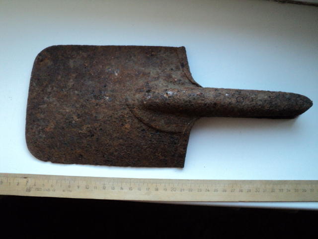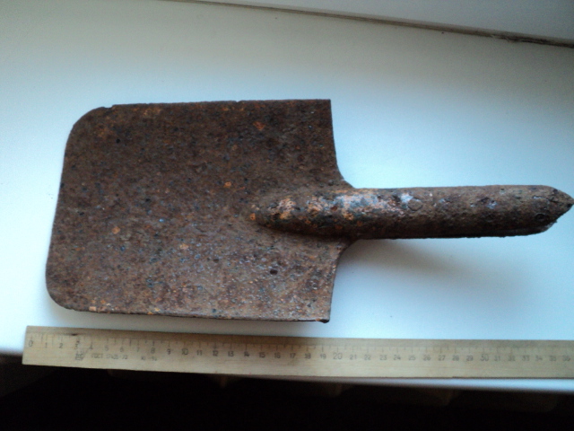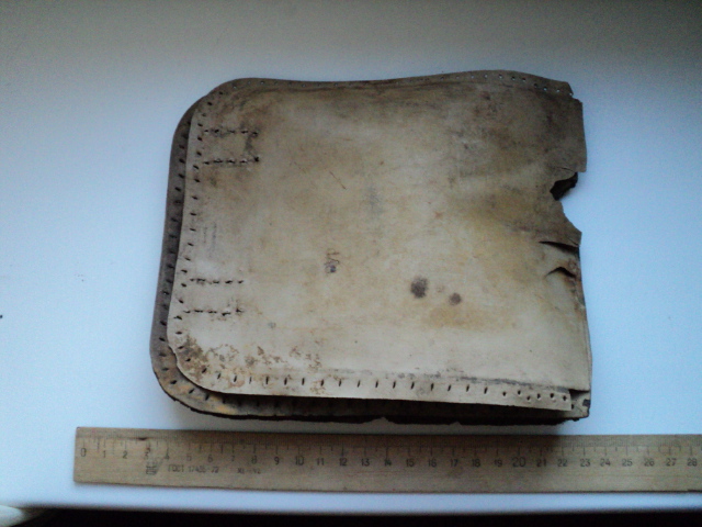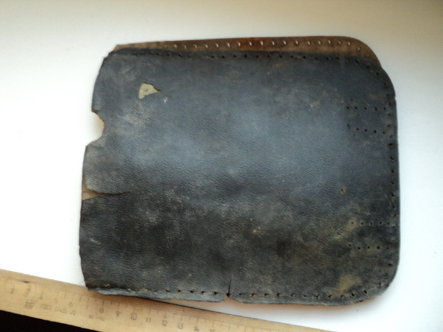 Выкопали чехол. Пока ходил по лесу потерял верхнюю часть. Что за клеймо на ней "cyp"? Видимо из поздних, материал - кожзам.