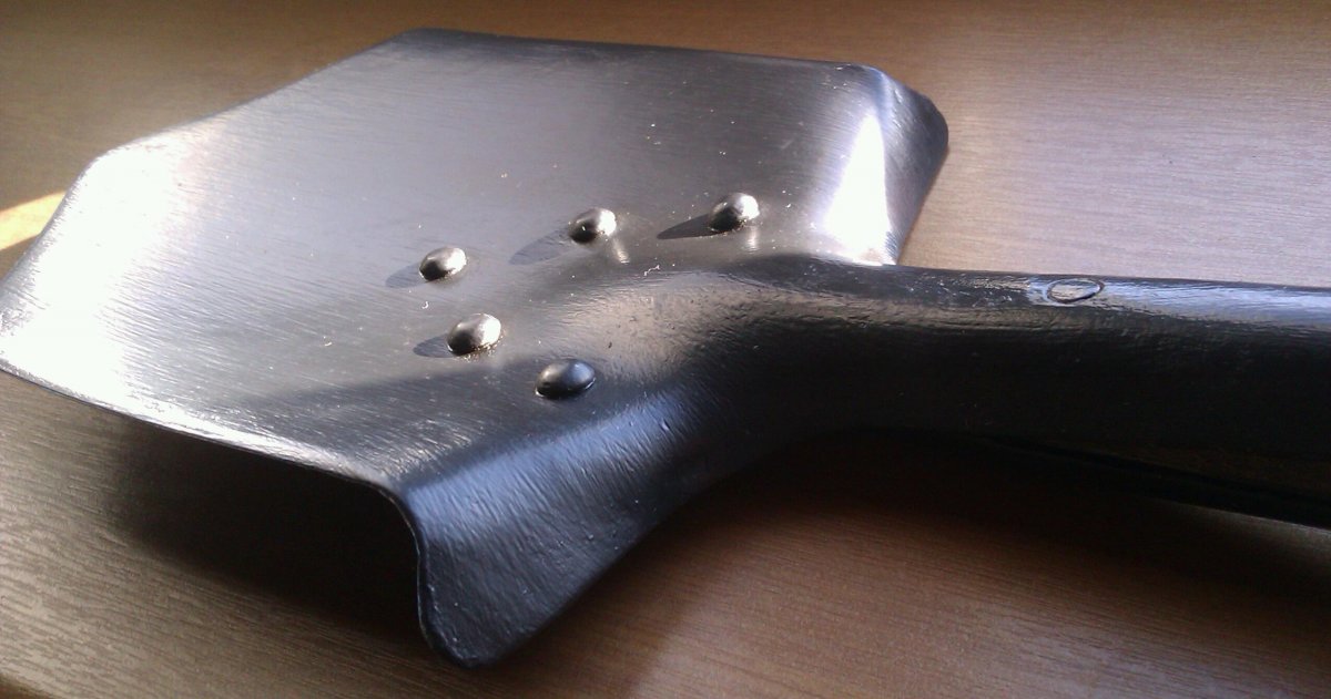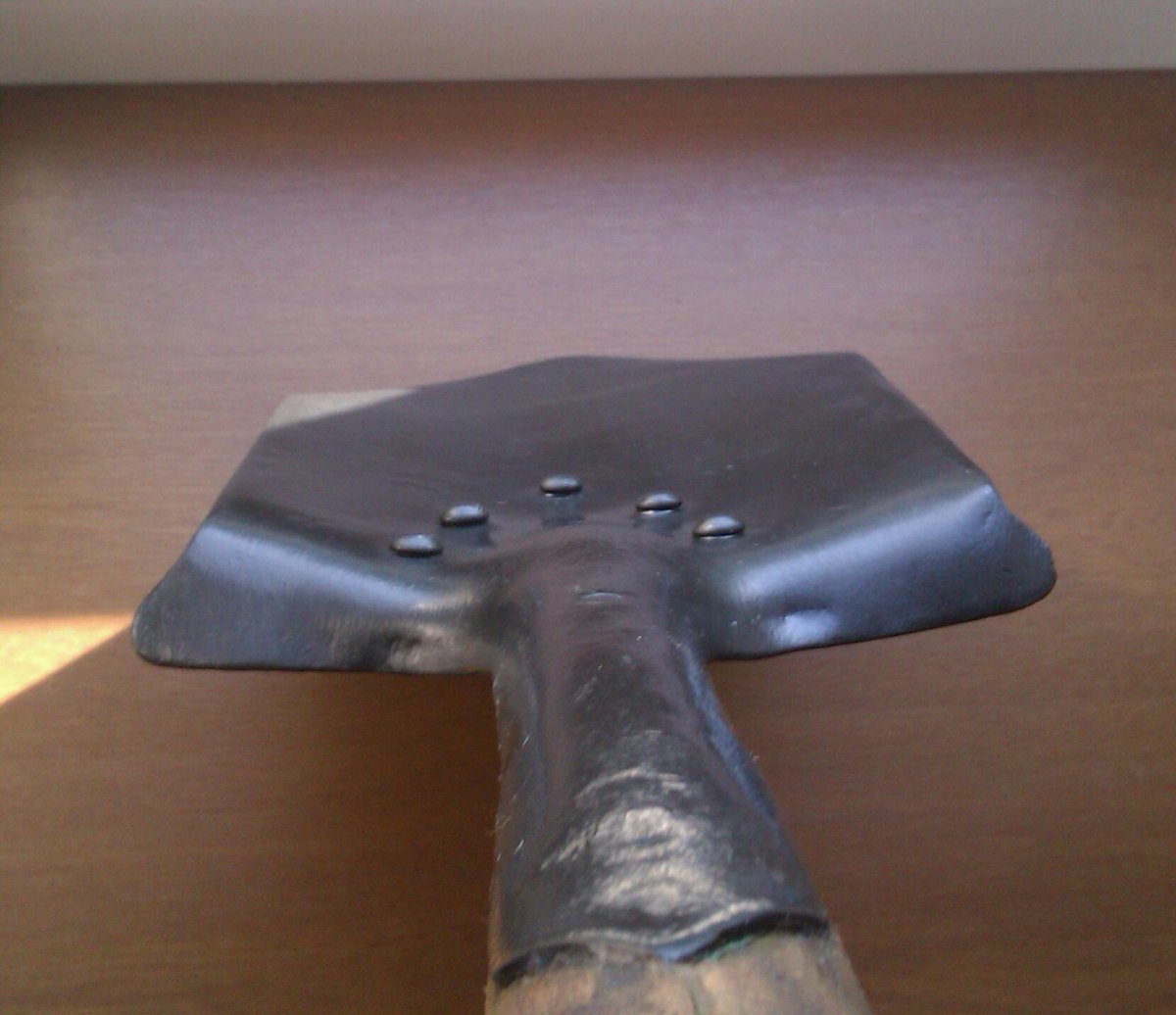 Снова лопатка. Не знаю каким чудом но пришла буквально сегодня с того места где брал все остальные. Но лопаток военного времени там не осталось совсем-а эта чисто случайно завалялась видать! Интересна черенком и двумя заклепками в место одной. Прошу оценить.