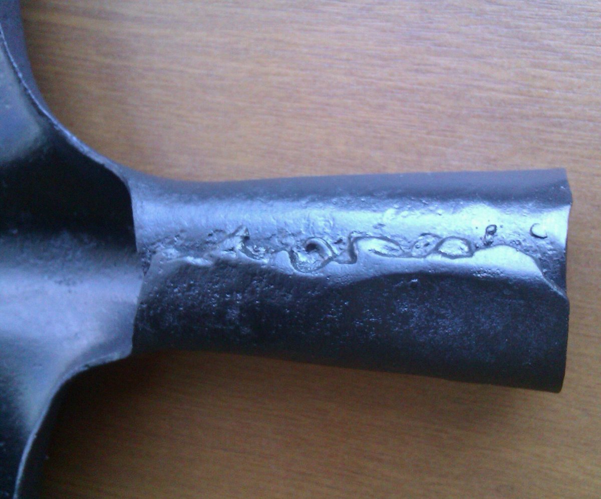 Камрад Виталий Иванович, считаю, что насчет замены черенка вы правы. Черенок, по сути, расходник и возможность его безпроблемной замены является одним из условий приемки лопатки (модели лопатки) на вооружение. Лопатки могли оказаться на складах СССР в качестве трофея или репарации от союзников. Если репарация, возможно даже что лопаты пришли и без черенков... Если трофейные - черенки могли заменить на уставные... - как раз в этом не вижу проблемы с определением. Я с вами согласен, что формой лотка лопатки похожи на австрийские. Однако, эта форма лопатки, с незначительными технологическими изменениями, сохранялась у всех бывших Австро-Венгров вплодь до конца WW2 - венгры, чехи, австрияки во многом однотипные. Пока не совсем соглашусь с другим. В, скажем так, благополучном 1938 году производители вышеперечисленных стран выпускали лопатки классического австрийского "уставного" типа, на заклепках и с кольцом. Контактная сварка в те годы в лопаточном произведстве уже применялась, но австро-венгры тех лет на сварке мне не встречались. Но не это главное - в те годы клеймо производителя на шанцевом инструменте было обязательно. Посему, буду вам крайне признательным, если вы разместите фото лопатки вашего знакомого и клейма на ней.