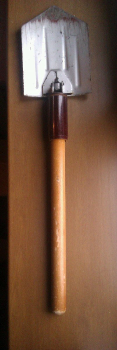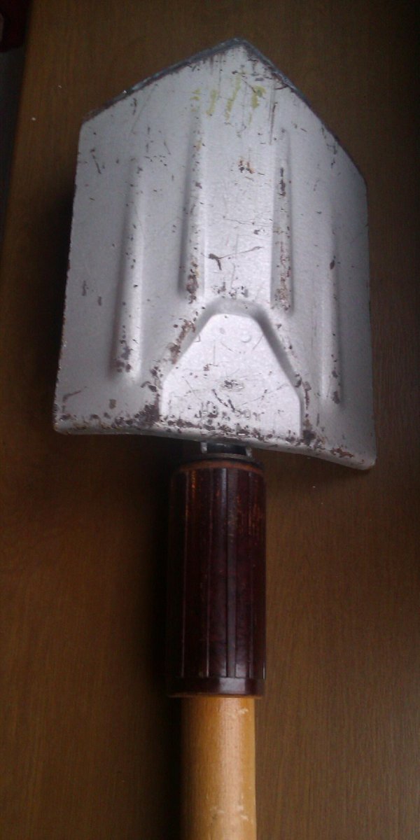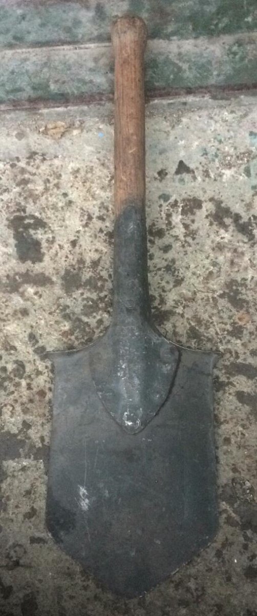 Всех с праздниками! Знакомый просит продать такую лопатку. Ну и предварительно хотелось бы услышать оценку в этом состоянии. Мне видиться все в родном сборе,за исключением ремвставки на конце черенка. Я встречал подобные ремонты на лопатах ГМЗ.