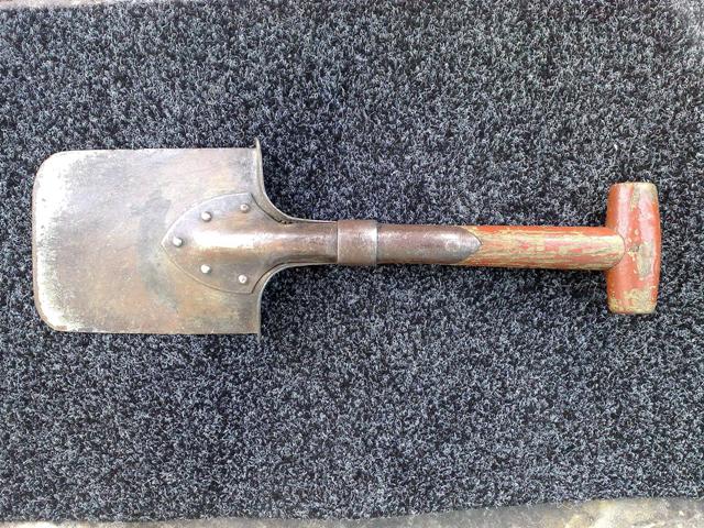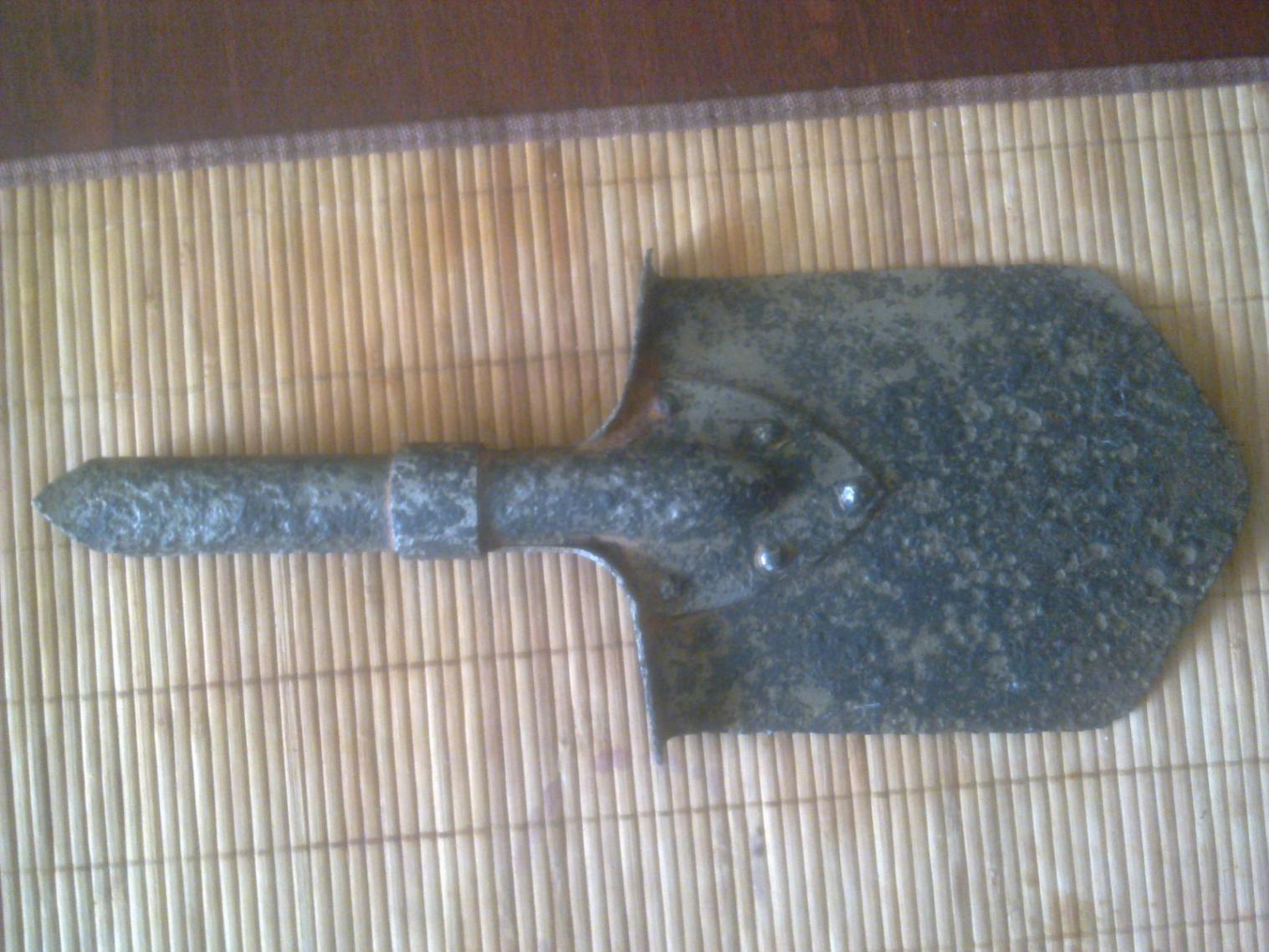 Лопата РККА до 42 года, как я понял из постов выше. На своей, после высверливания заклёпок, я кольцо снял, но, в принципе, это делать не обязательно. Это я уже понял после того, как покрутил её в руках разобранную.