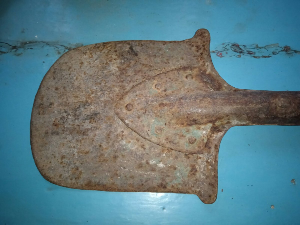 Ни разу не он. Посмотрите на м1934,там наступы с приклепанными "ушами" и кольцо сделано несъемным,одной деталью с верхним тяжем. Это пункт номер раз. Номер два- на немецких лопатках заклёпки плоские,а у тс выпуклые,что исключает вероятность немецкого происхождения девайса. Мне она больше напоминает люто заколхоженную советскую "ушастую" раннюю лопату,с закругленным от эксплуатации лотком. Ну или на худой конец РИАшную с утерянным обжимным колечком.