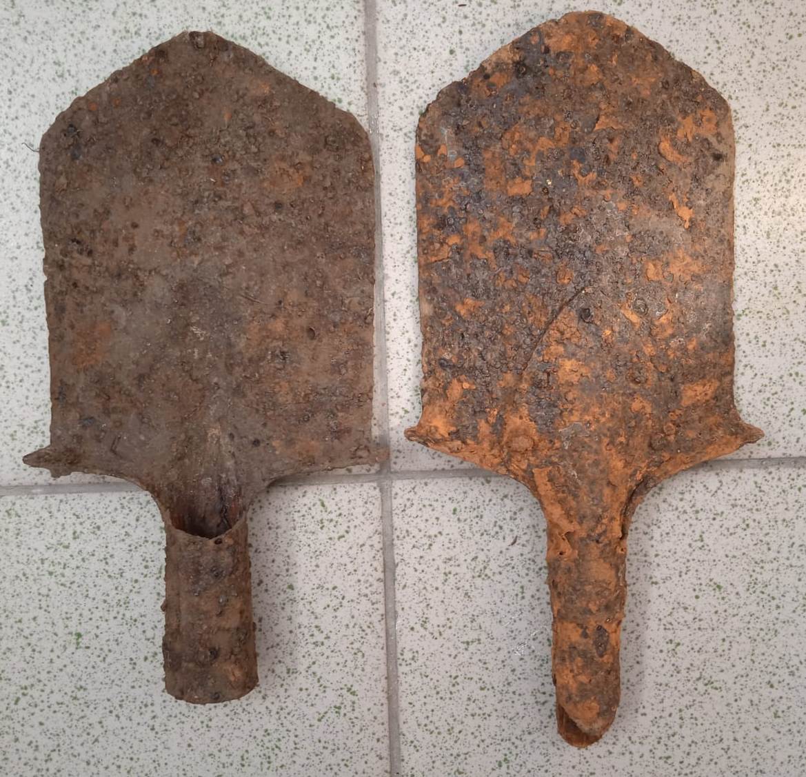 Сапёрки 2 шт. Чьих будут? Коп по всем войнам.. Возможно: левая- ВМВ, правая с остатками дерева - ПМВ? Данке.