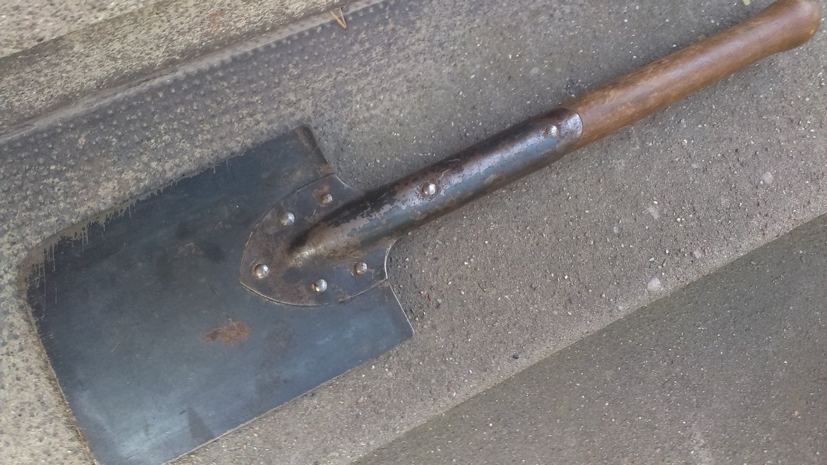 здравия, камрады. помогите определить, что за лопатка попала мне в руки. клейм никаких не нашёл, но думаю, что-то немецкое. оригинальный окрас фельдграу.