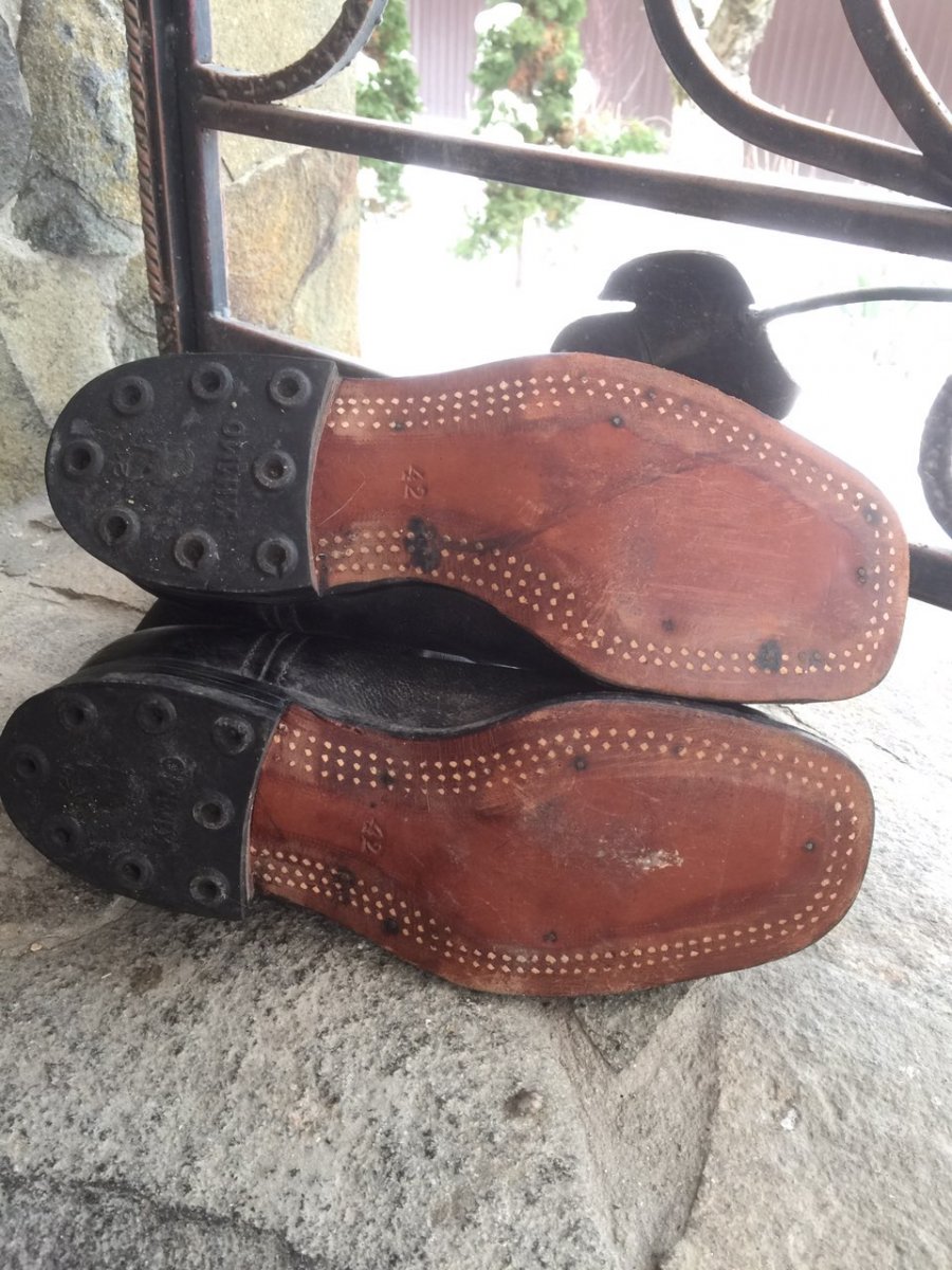Продам кожаные сапоги.Раз.№42. Подошва подбита деревянными гвоздиками.Новые. Чердачный сохран. Кожа мягкая. На левом сапоге в районе пятки небольшие потертости .Цена 800 грн.