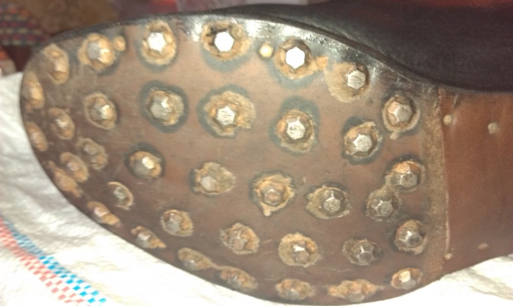 Продам сапоги. Делал их Змей (Лёша). Одевались один раз на Шампань 2014. Размер 44, на широкую стопу, подъём высокий. высота от каблучной подковы 36-37 см. Объём голенища 44 см. По подошве, шипам и состоянию подков видно, что одеты были один раз. Подошва правильная, каблук наборной, со скосом. Вобщем всё на фото. Любые дополнительные фото могу скинуть.Цена 1100 гр. Возможен не большой торг.